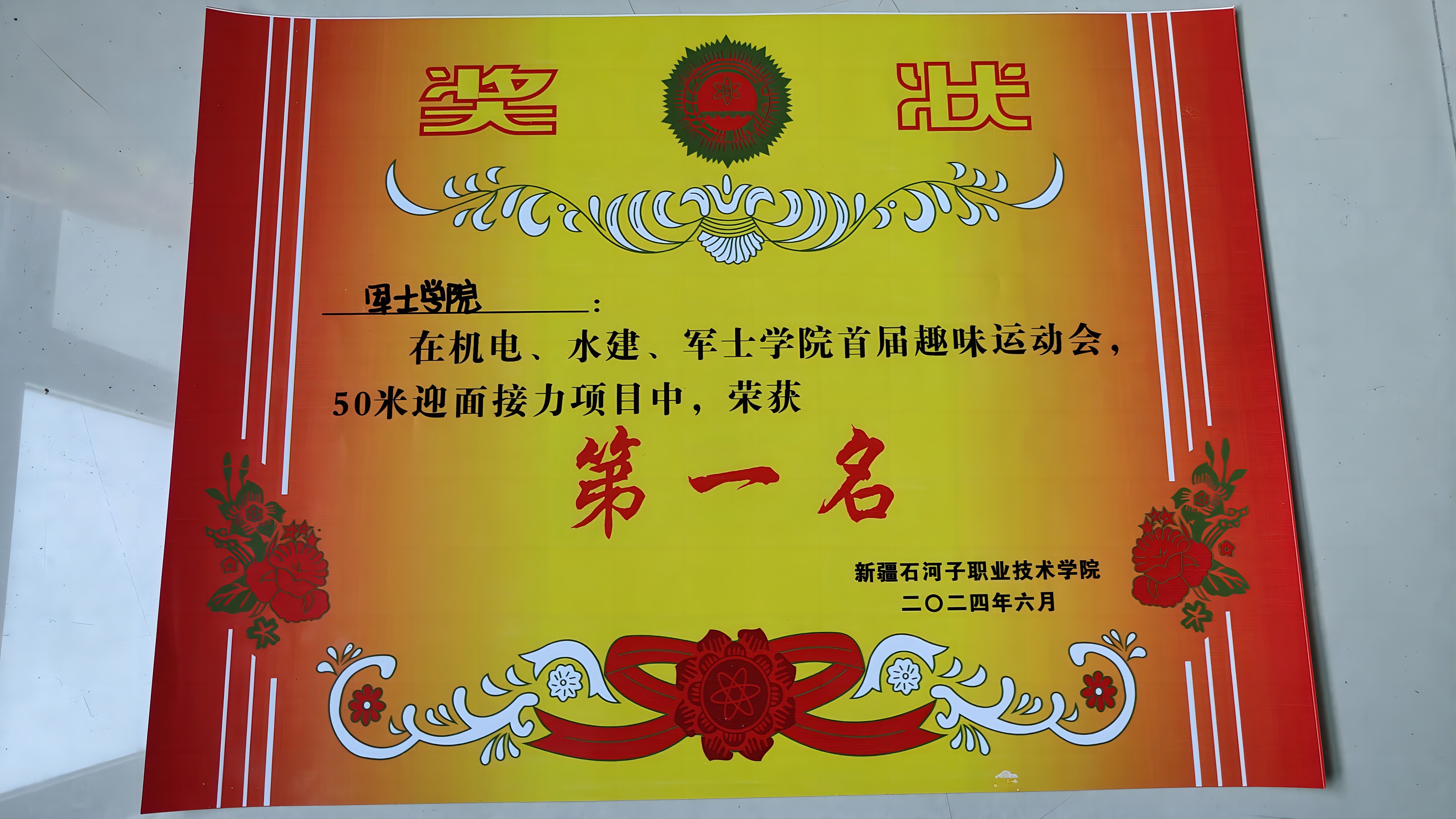 军士学院50米迎面接力第一名