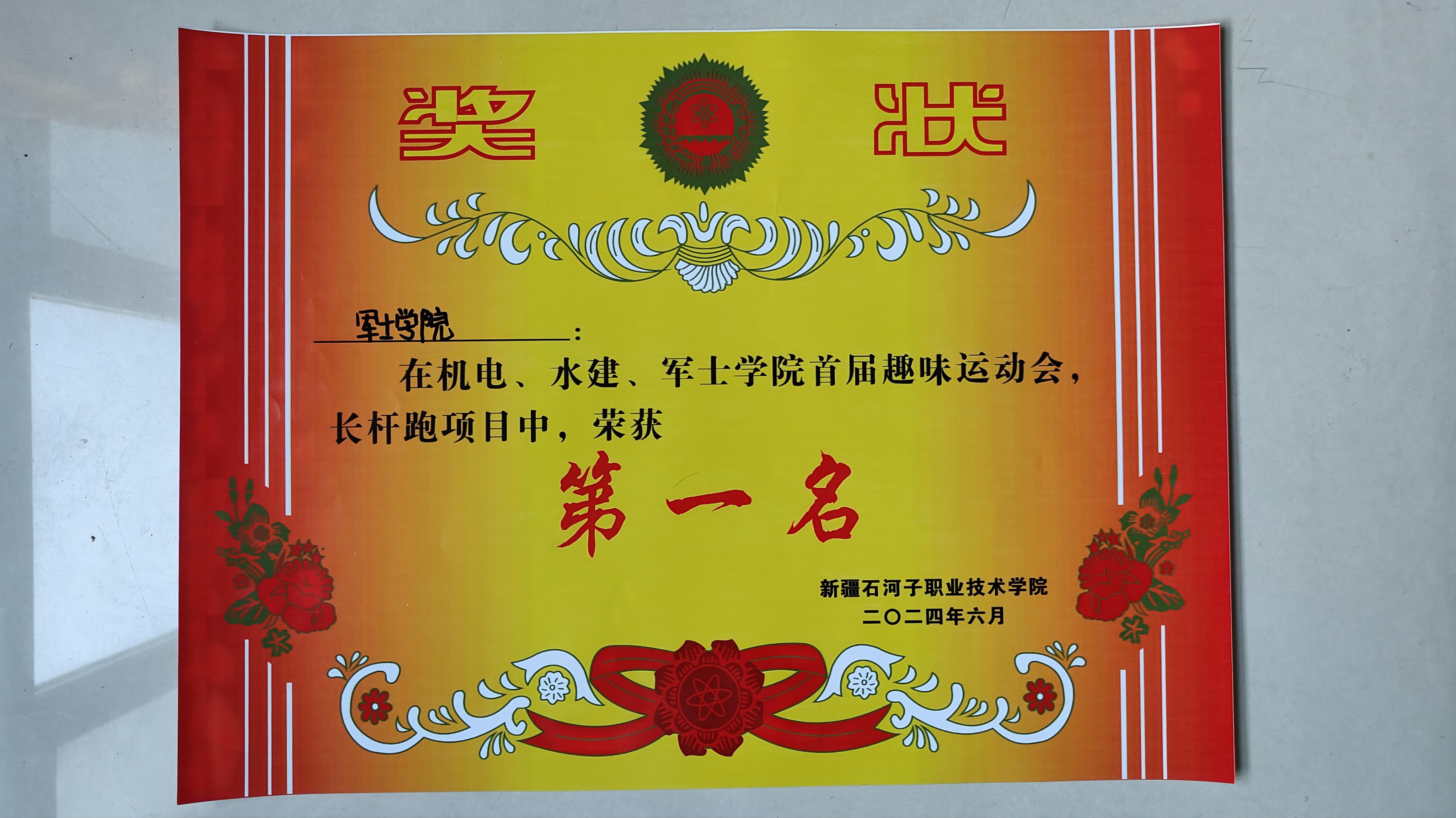 军士学院长杆跑比赛第一名