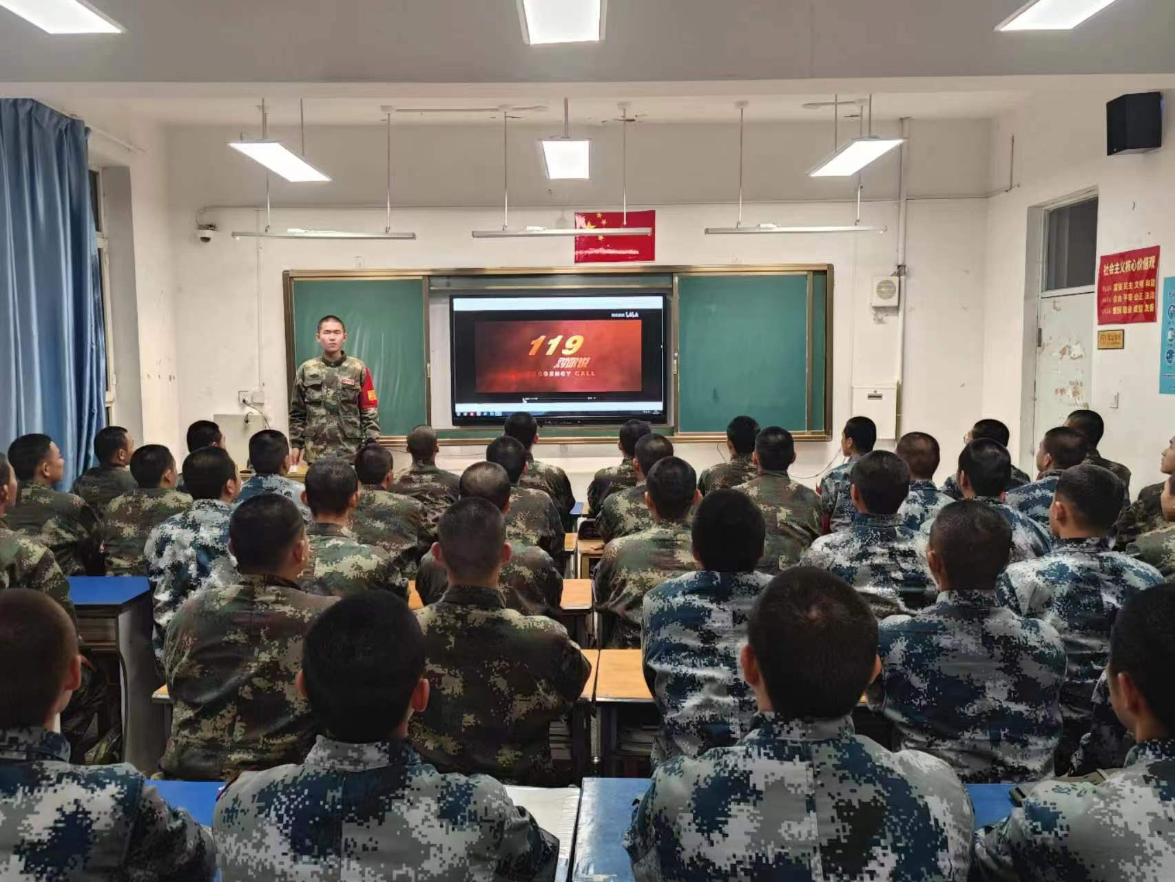2023年12月7日晚,为进一步提高防灾减灾意识,军士学院全体军事生利用晚自习时间,在教室组织观看消防安全教育警示片。通过观看消防安全警示片,牢固树立了全体师生安全防范意识,提升了安全防范能力,筑牢了校园生命安全的“防火墙”。
