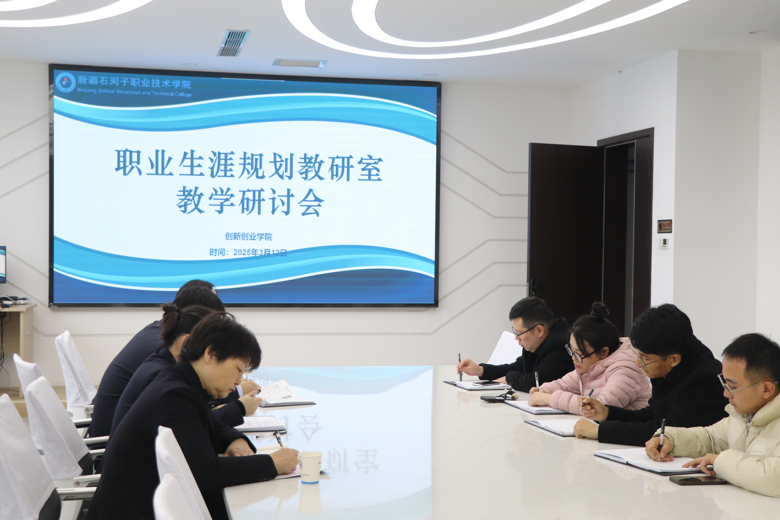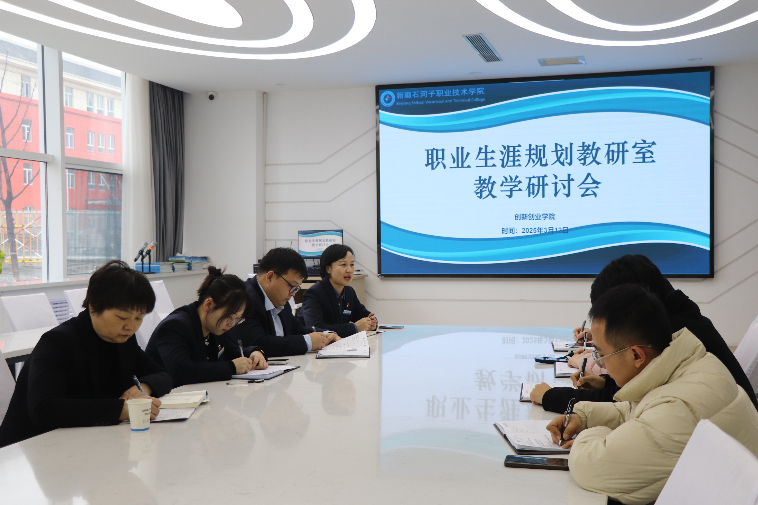 专题学习结束后,教研室主任刘巧芝老师详细介绍了我校《大学生职业发展与就业指导》课程建设的基本情况,要求教师们在授课过程中要注重价值引领,引导学生将个人价值与社会价值相统一,将个人职业发展与实现中华民族伟大复兴的中国梦结合在一起,同时提出了“本土化生涯教育”的重要性。参会教师们在研讨中积极发言,李大鹏老师分享了自己对AI与生涯教育融合的理解与期待,他认为:“AI技术的引入将为生涯教育带来全新的教学体验,需要通过教学实践不断探索,同时开设就业指导工作室也是对学生职业发展与就业指导教学工作的有力补充。”