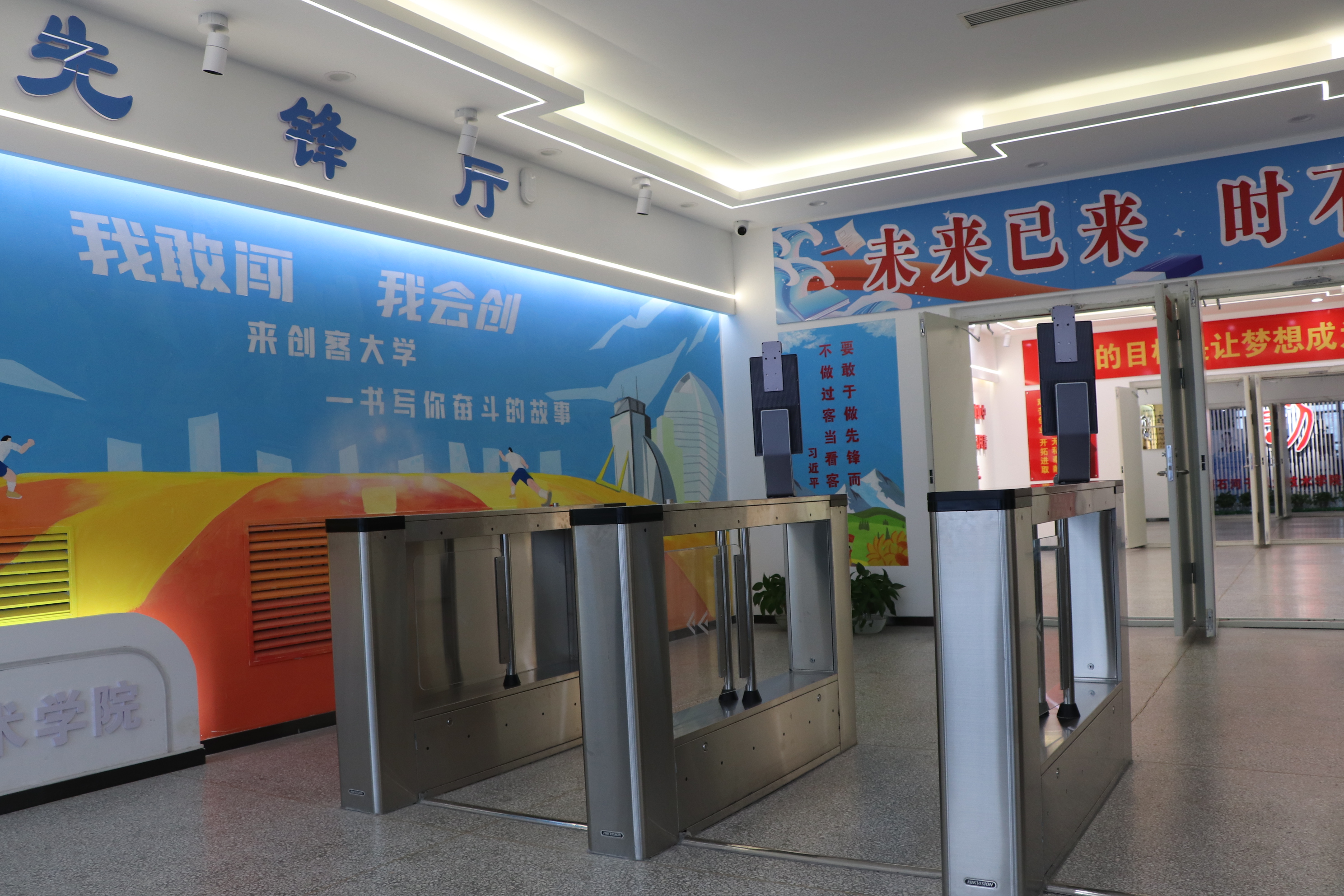 双创成果展示墙是创新者们智慧与汗水的结晶之地,一个充满活力与激情的空间,旨在展示项目组的杰出作品,激励更多学生投身创新大潮,共同构建未来社会的美好蓝图。