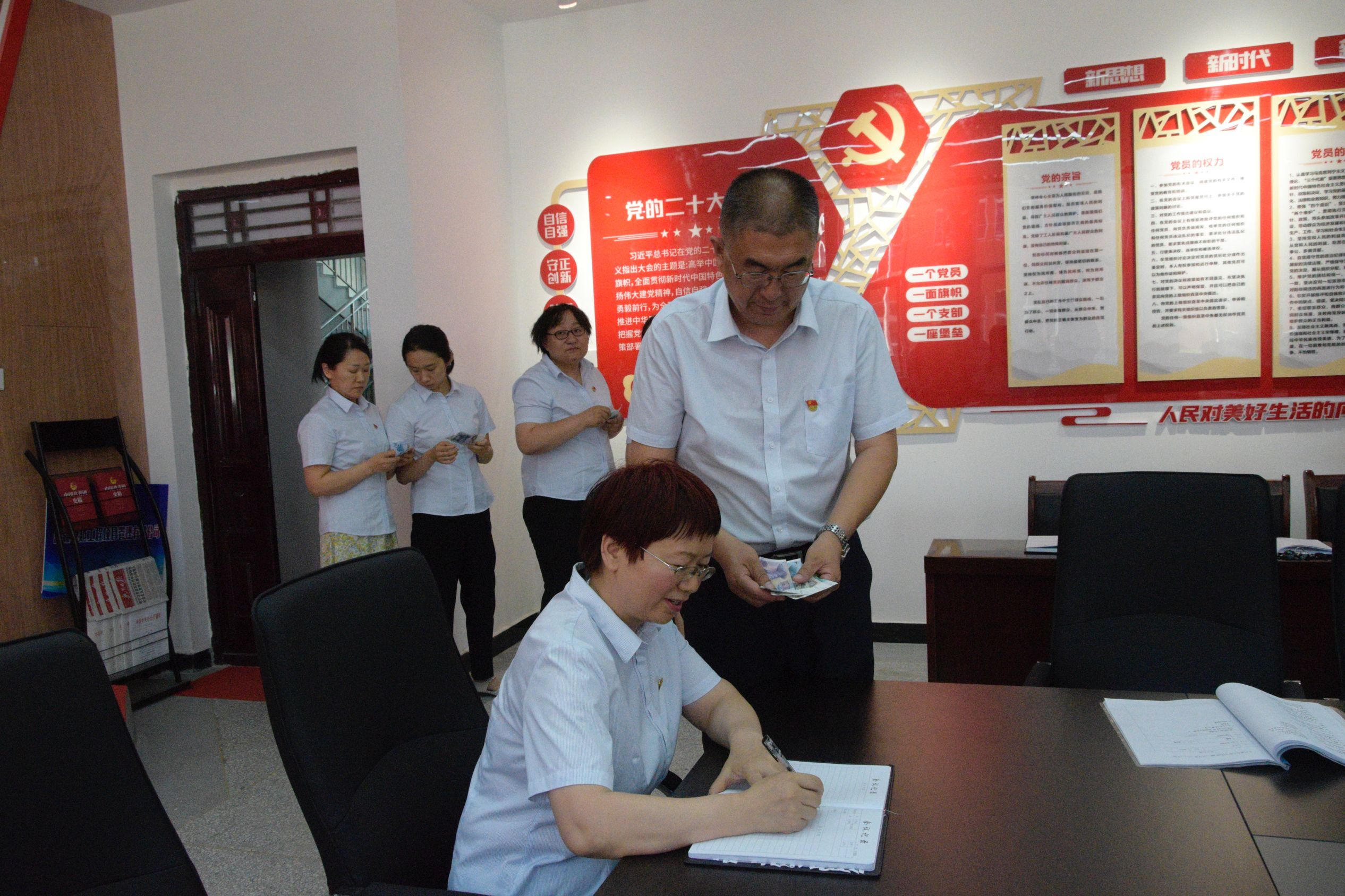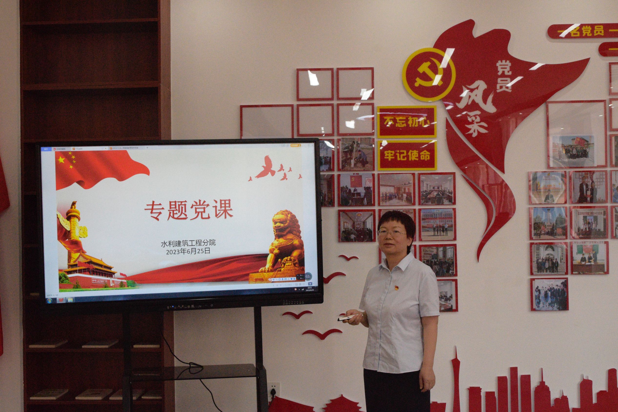 6月25日,在水利建筑工程分院党员活动室,开展“感党恩跟党走”党旗映天山主题党日活动。会前全体党员同志庄重肃立举起右拳,在党总支书记俞峰同志的带领下,共同重温入党誓词。全体党员饱含深情,回顾入党初心,纷纷表示将继续发扬胡杨精神、兵团精神,不断为兵团职业教育事业贡献力量。党员李晓芳同志说“作为一名加入中国共产党刚满一年的年轻党员,今天重温入党誓词,仍然心潮澎湃,作为党员在工作岗位上要充分发挥先锋模范作用,立足本职岗位,在学院双高建设,创建应用型本科等重点工作中贡献力量”。宣誓后全体党员在刘春晓同志的带领下,共同学习了在准确把握“六个必须坚持”中扎实推进中国式现代化,该专题学习内容是习近平新时代中国特色社会主义思想的立场观点方法的重要体现,为全体党员更加完整准确学习党的二十大精神提供了根本遵循。党总支组织21名党员现场缴纳党费活动。活动后,举办了党员过政治生日活动,党总支委员张婷同志代表党总支向刚加入党员队伍的同志赠送红色书籍,鼓励他们积极学习党的优秀著作,加强党性修养,不断强化党员意识,激发干事创业的精气神。