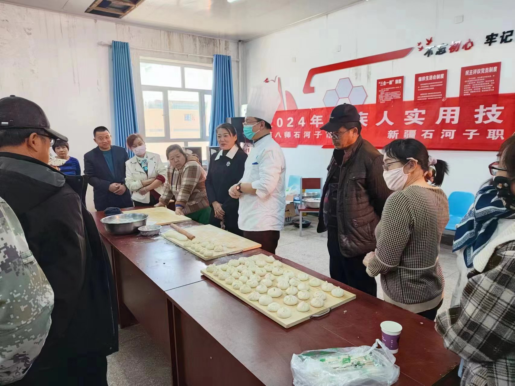 彰显人社特色,助力乡村振兴。2023年9月成为“国家技能根基工程培训基地”新疆唯一入选的职业院校。2024年3月至4月,共完成师市14个团场350人次专项能力培训,培训内容包括中式面点、中式烹饪、抓饭制作、烧烤制作等4个就业需求量大、便于就业创业的专项能力培训项目。同时,学院围绕兵团乡村产业振兴发展目标,充分发挥全国乡村振兴人才培养优质校功能作用,探索创新多类型多层次的人才培养模式。根据兵团职工在专业技能、技能拓展的具体要求,采取耕读结合、弹性学制、送教下乡等形式,2024年3月完成师3个团场,11个班次578人次职业技能和专项能力培训,其中职业技能培训413人次,专项能力培训165人次,结合学院特色专业与兵团地域优势,设有电工、无人机驾驶员、养老护理员、育婴员等职业技能等级培训,同时设有微店组建与服务、农村合作社经营等专项能力培训等服务,量身打造符合乡村振兴的“懂技术 爱农村 爱农业”的复合型人才。