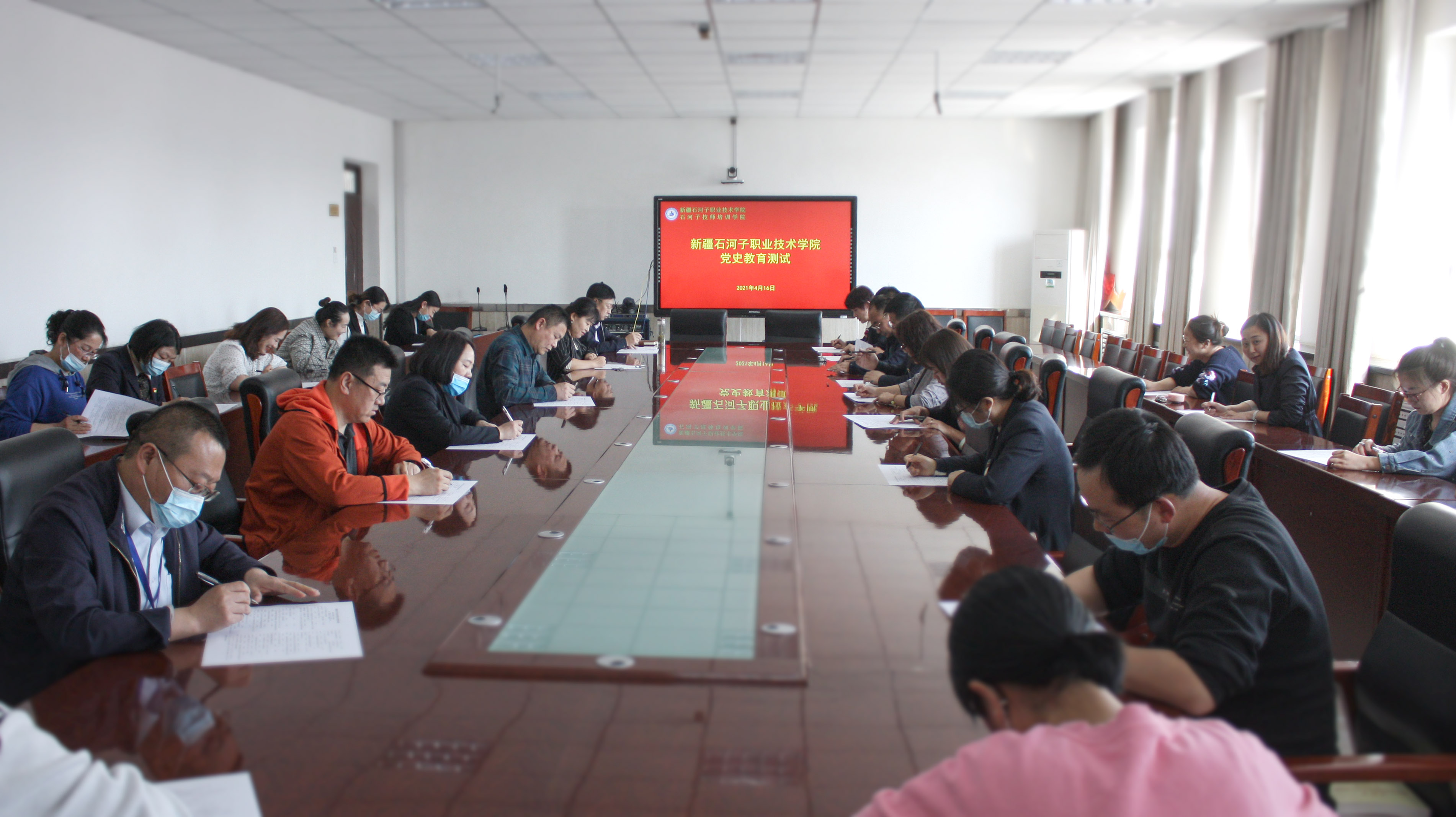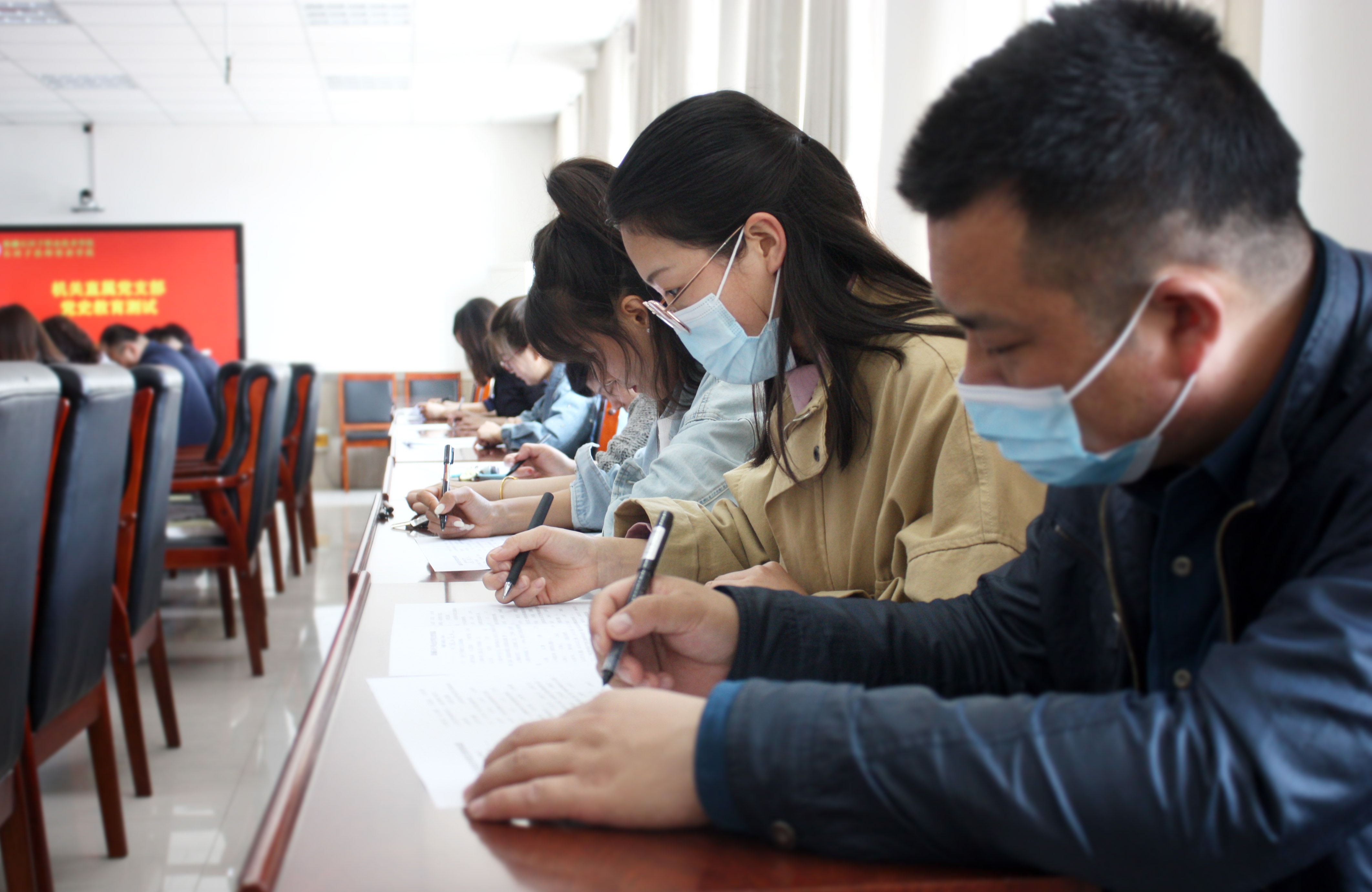 学院200多名党员分10个考场同时开考,此次测试采用闭卷形式,内容紧紧围绕党史学习教育,试题涉及面广、针对性强,重点测试党员干部近期对党史学习的目的、意义以及中国共产党历史上的重大事件、重要会议、党的思想理论等党史知识的学习掌握情况。考试现场,所有人员严格遵守考试纪律,专心致志、认真答题,现场气氛紧张、秩序井然,把学习教育成果详实地体现在了试卷上,整体测试取得了良好效果。