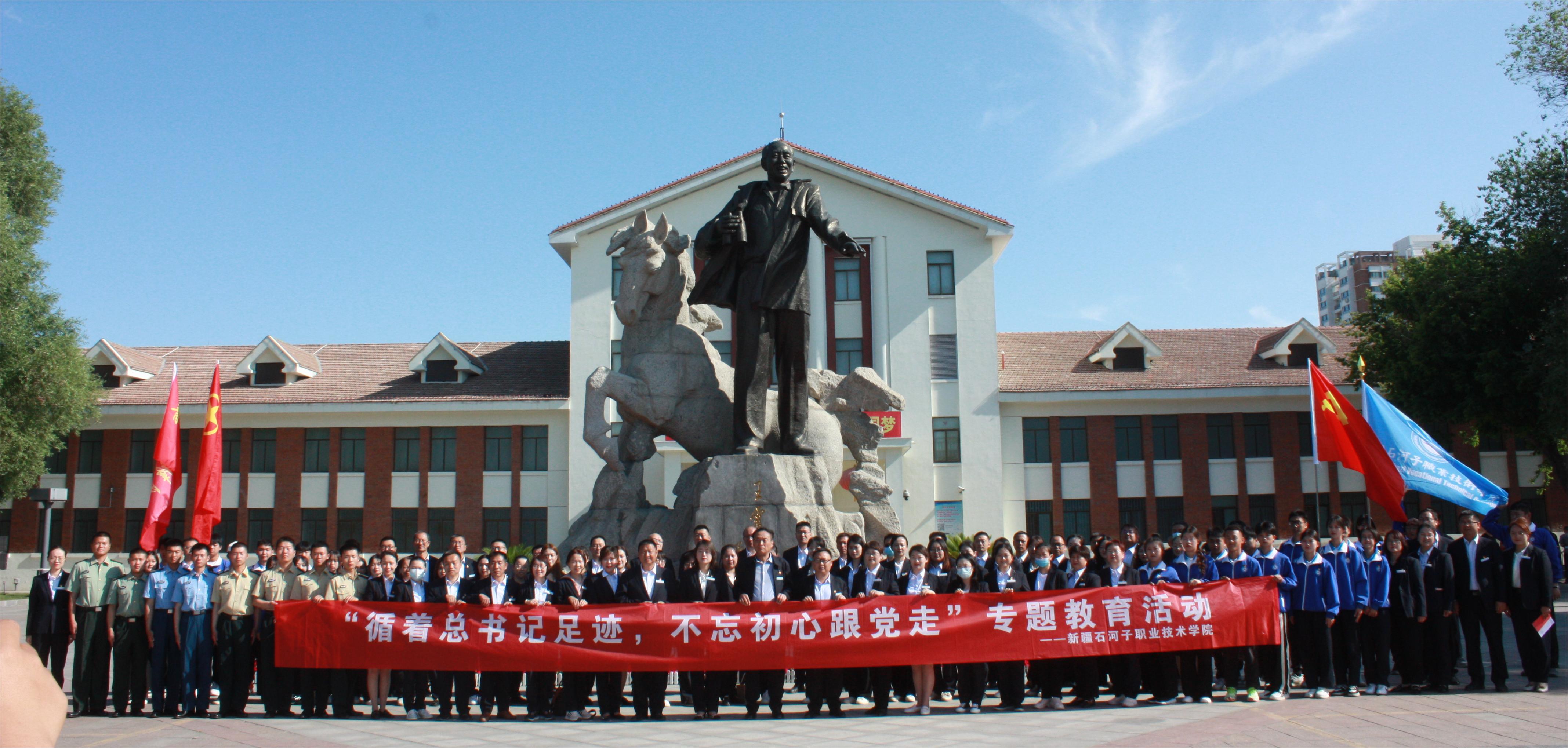 开展“循着总书记足迹 不忘初心跟党走”专题教育活动,5月30日,学院党委书记史文革带领120余师生,沿着习近平总书记视察石河子的足迹,先后前往军垦博物馆——143团1连(棉田)——143团9连(桃园)——团部文化广场边走边听,进行学习观摩。学院师生怀着崇敬之心去,带着深刻感悟回,感受历史情境,把习近平总书记的关心关怀转化为奋进力量,牢记嘱托、感恩奋进,以崭新的姿态、饱满的斗志投入到推动师市经济社会高质量发展的伟大进程中去。