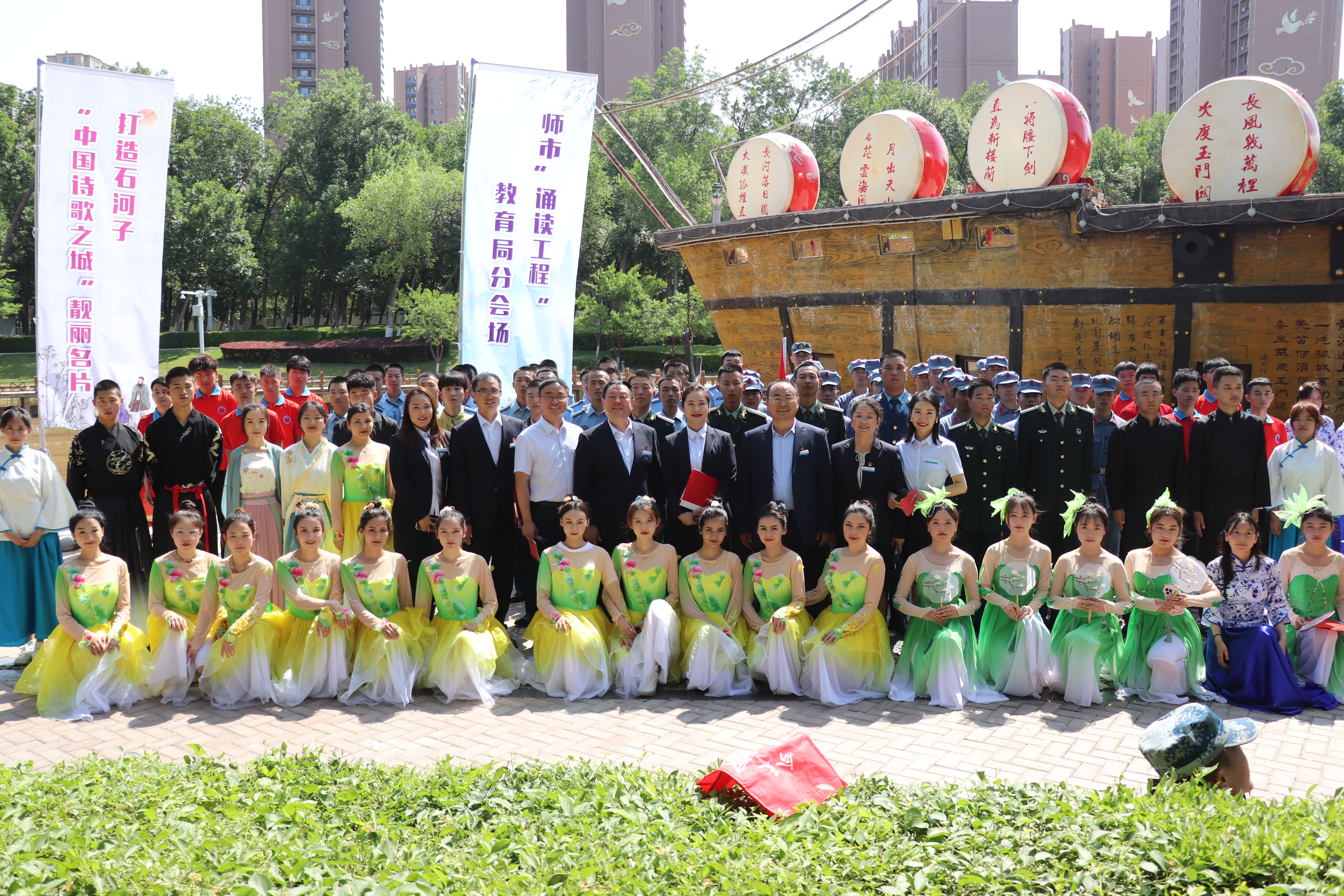 参加师市“诵读工程”教育系统分会场学院专场展示,5月27日,学院副院长张涛带领学院近200名师生,以边塞诗歌为主题,采用集体朗诵、情景剧、合诵、对诵、多人朗诵的形式,为现场的围观群众带来一场精彩纷呈的古今边塞诗歌展演,深情回顾党的伟大成就,弘扬浓厚的家国情怀,热情讴歌革命先烈和仁人志士大无畏的革命精神,推动学院校园文化的繁荣发展。