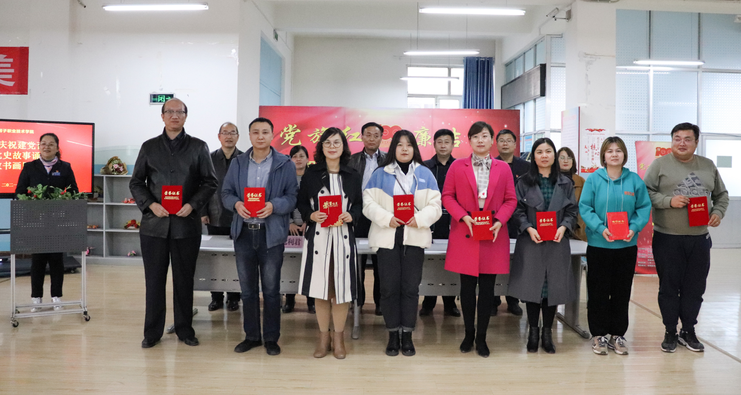 会上,党政办张金果、成教分院院长王国强分别宣布了党史故事诵读获奖名单和廉政书画展获奖名单,参会领导为56名获奖教师和63名获奖学生颁发荣誉证书并合影留念。党史诵读获奖学生代表分享了中国共产党红色故事,以多种形式重新展现中国共产党奋斗史中的经典片段,一个个饱含深情的故事,一声声源自肺腑的激情迸发,仿佛把现场师生带入了那段激情燃烧的岁月。纪委书记晁利君代表学院领导作总结讲话。晁书记首先对活动成效表示肯定,希望师生在学习党史过程中要创新形式载体,运用文化、艺术、时尚的元素,使党史学习教育形式更加丰富多彩。会后,传统文化工作室李婵老师带领师生现场学习剪纸,积极发青春之声、展青春之采,以艺术的形式展示红色文化,形成了促学、比学、赶学、真学的浓厚氛围,将现场的气氛推向了高潮。