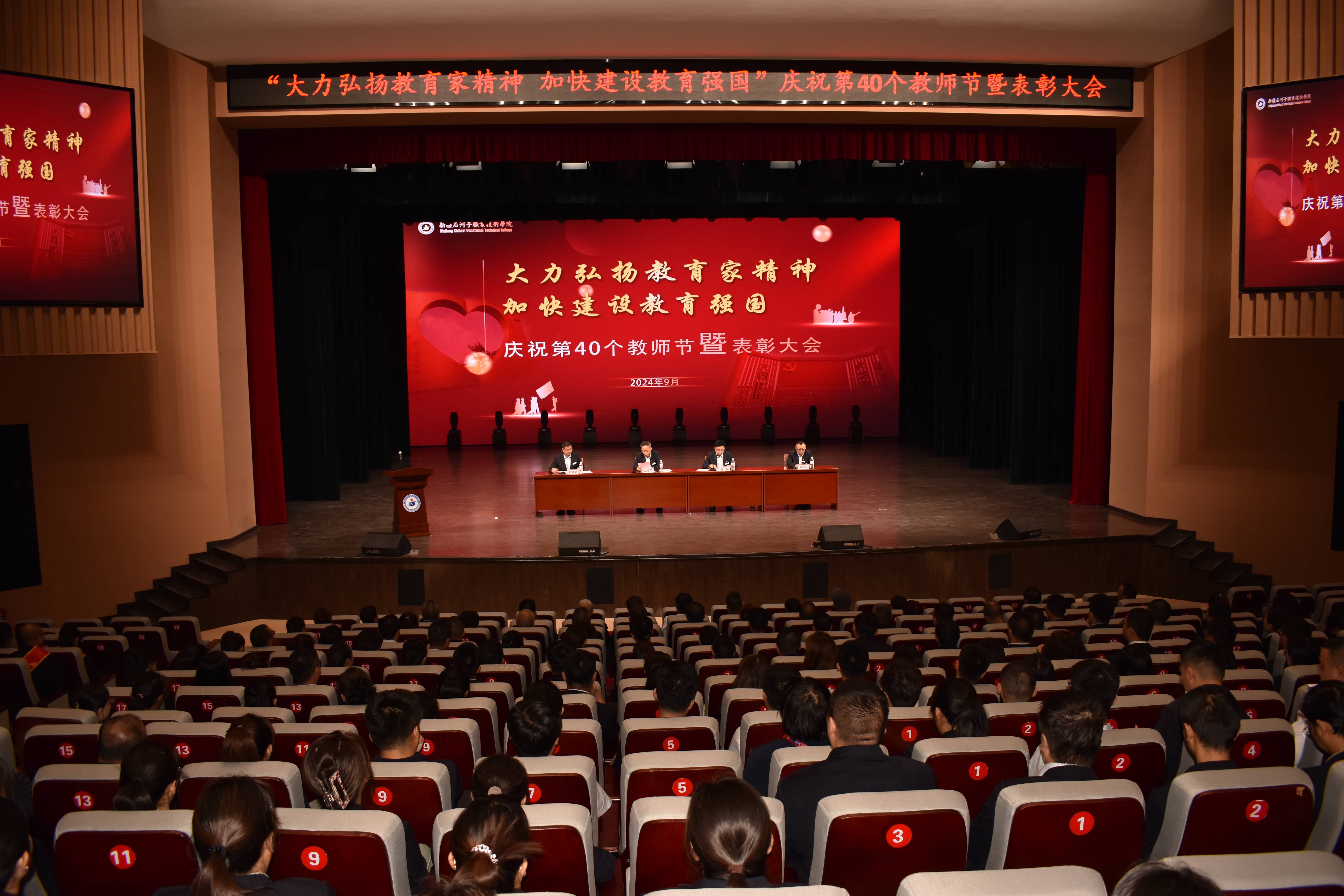 本次表彰大会在庄严的国歌声中拉开序幕。全体教职工为祖国和教育事业表达了由衷的敬意,并郑重宣誓了人民教师的誓词,展现了从事教育事业的坚定决心。学院党委副书记兼院长林炯发表讲话,号召全体教师紧密团结在学院党委周围,以更加扎实的工作作风,为学院的发展做出新的贡献。学院纪委书记万祥军宣读了获奖教师名单,包括连续三年考核优秀、本学年各类先进个人、工作满三十年的老教师以及即将退休的教职工。学院领导为获奖人员颁发了证书。教师代表郭健和工作满三十年的老教师代表罗靖分别发言,分享了在学院的成长经历,并表达了作为教师的自豪感和骄傲感。