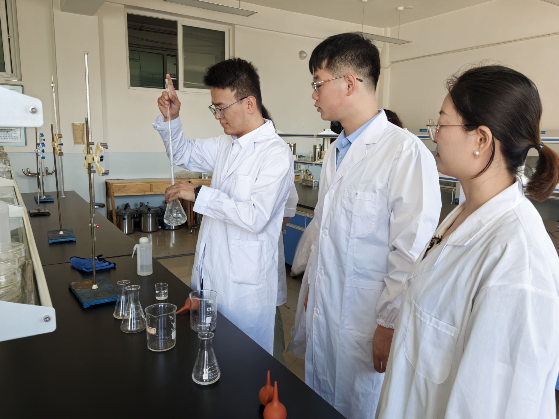 食品检验检测技术面向农产品食品检验员、产品质量检验工程技术人员、质量认证认可工程技术人员等职业,农产品食品检验检测、实验室管理与服务、食品质量与安全管理等岗位(群)。2016年食品营养与检测专业(现专业名为食品检验检测技术专业)被列为兵团现代学徒制试点专业。食品检验检测技术专业造就了一支专业带头人与骨干教师完备、专任教师结构合理、专兼职教师比例适当、师生比合适,“双师型”教师比例高的专业团队。