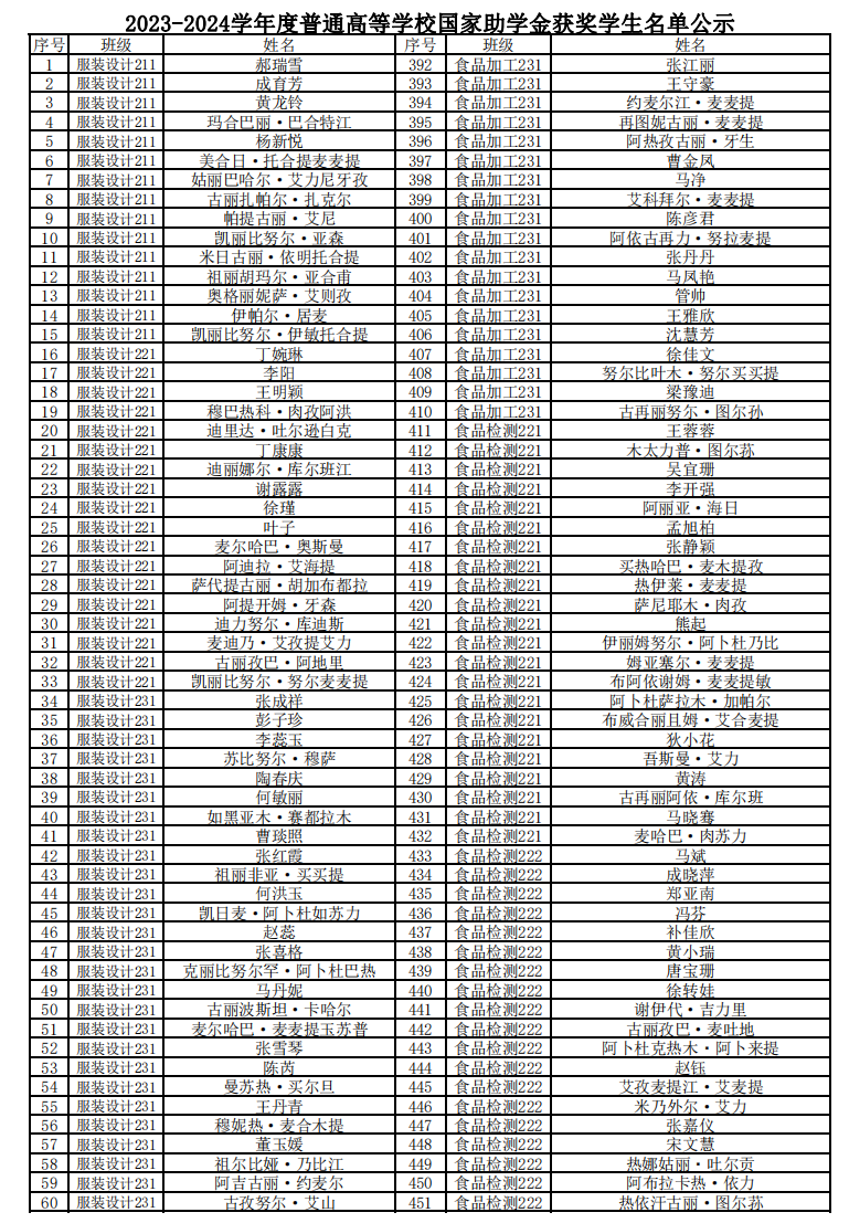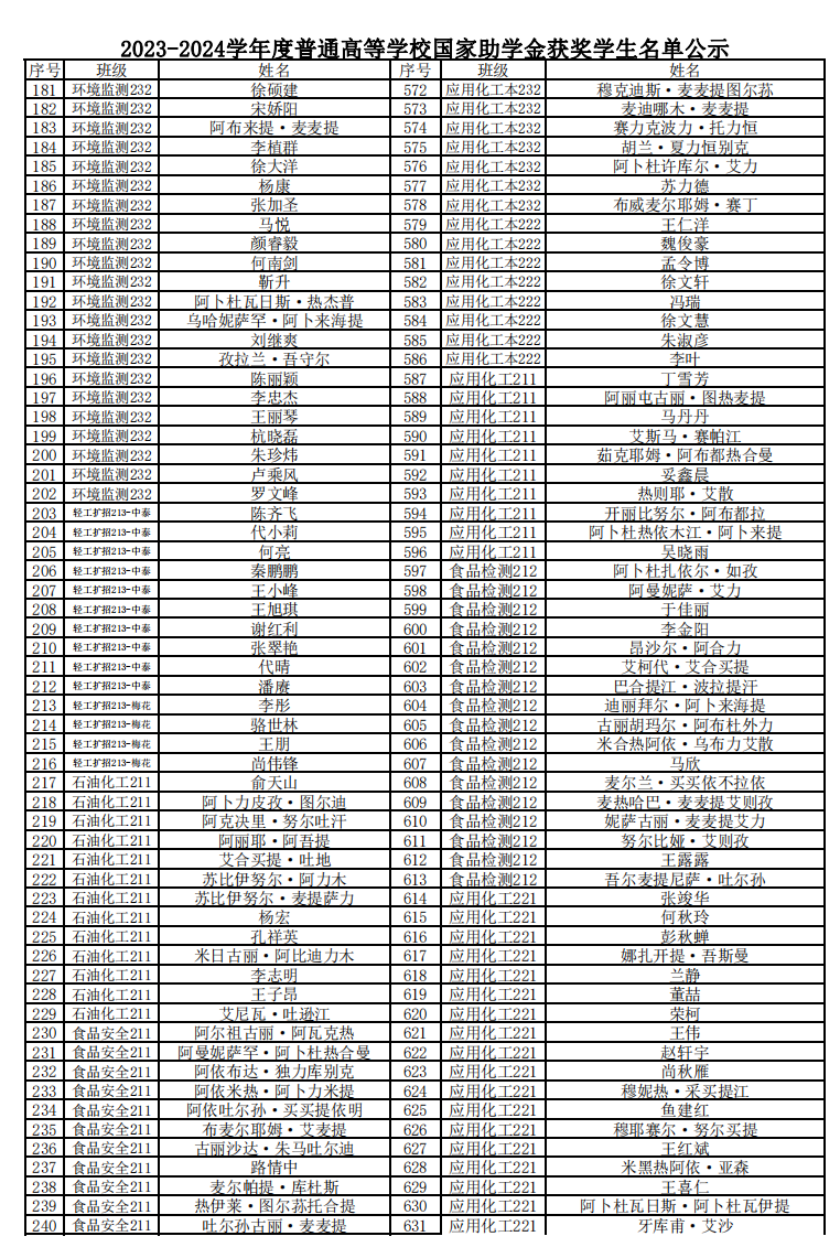 2023-2024学年度普通高等学校国家助学金获奖学生名单