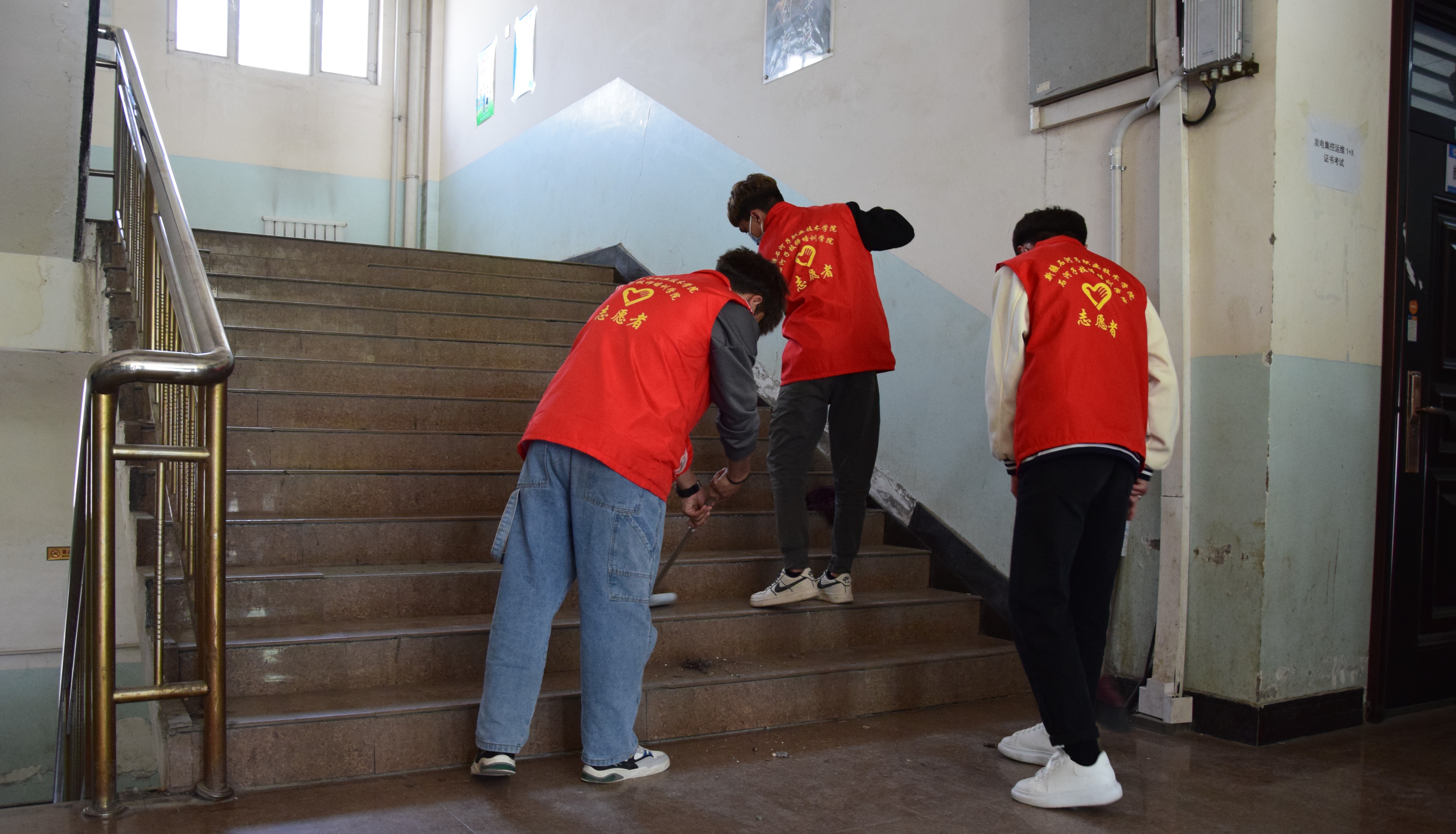 活动中,志愿者们手持扫帚、垃圾桶等工具,本着不怕脏、不怕累的奉献精神,针对道路上的杂草、塑料袋等垃圾进行了集中清扫,并劝导同学们主动拾起路边垃圾。对主干道两旁的校园文化宣传栏进行擦拭,宣传标语焕然一新。大家发挥“团结、友爱、互助、进步”的精神,圆满如期完成校园清理的任务。