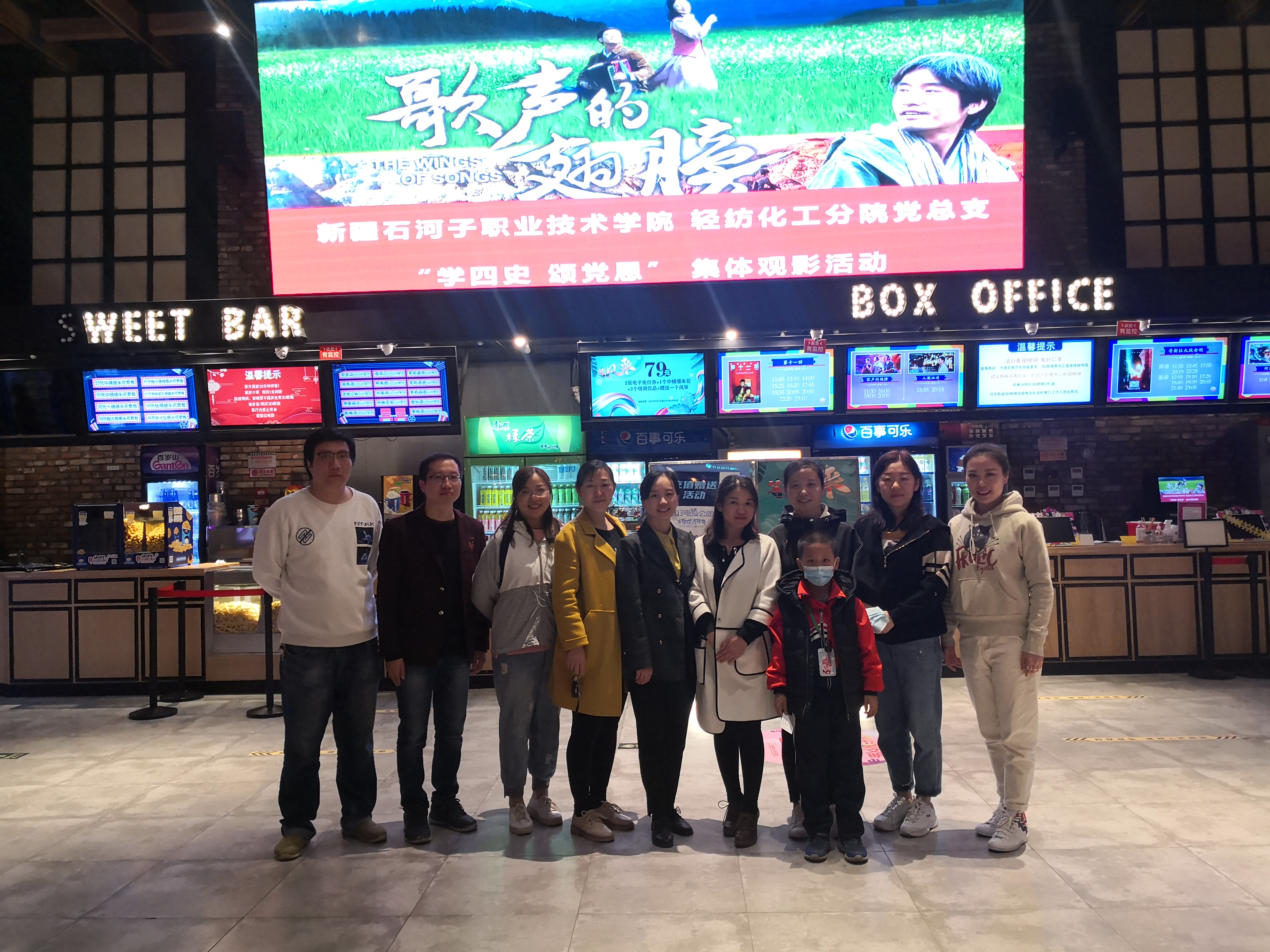 2021年4月8日,轻纺化工分院党总支组织教职工在103电影公园,开展“学四史·颂党恩”主题活动,集体观看红色电影《歌声的翅膀》。