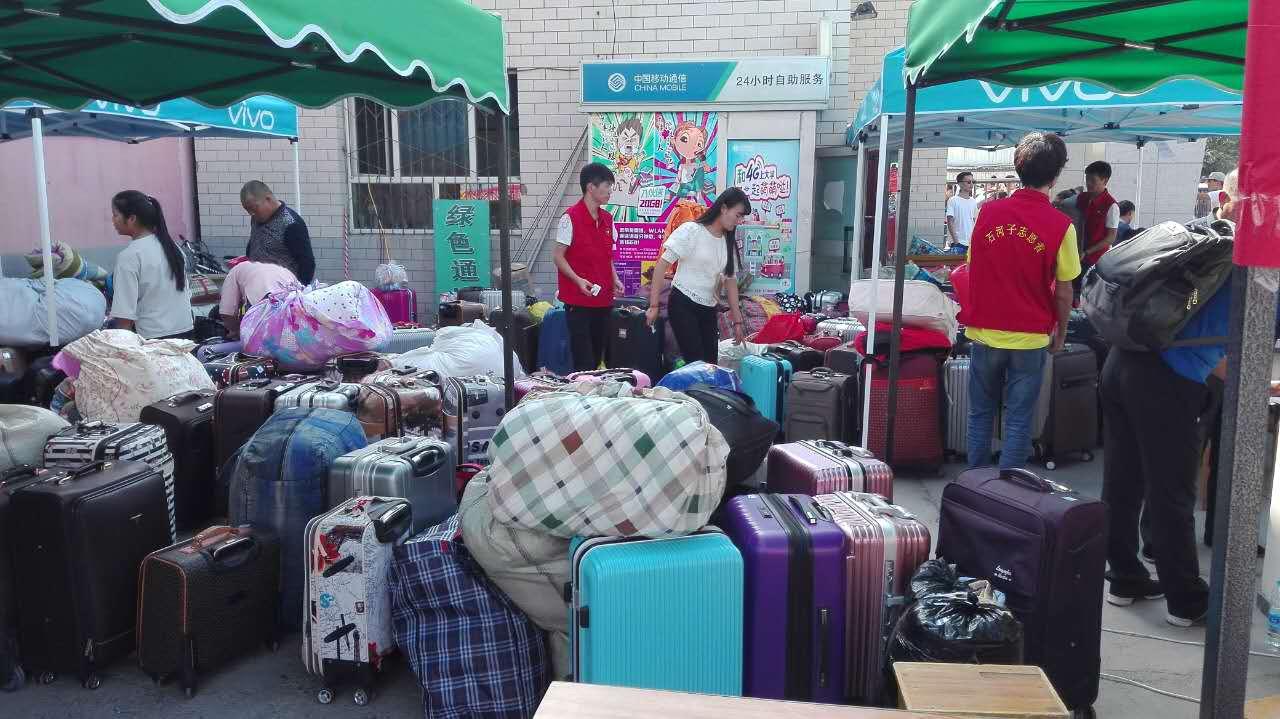 图为分院教师在火车站准备新生接站