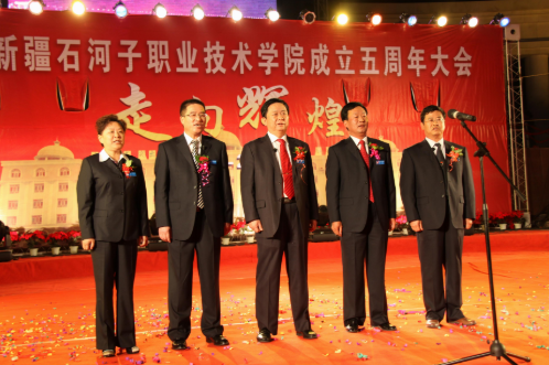 当晚8点,石河子职业技术学院华诞奏响了最动听的乐章,建校五周年庆祝大会在石河子文化宫隆重召开。晚会上,学院对张志超、刘禄、姜丹、雷阳等十位“优秀毕业生”给予了高度评价,并由企业家们向他们颁发了证书和奖品。