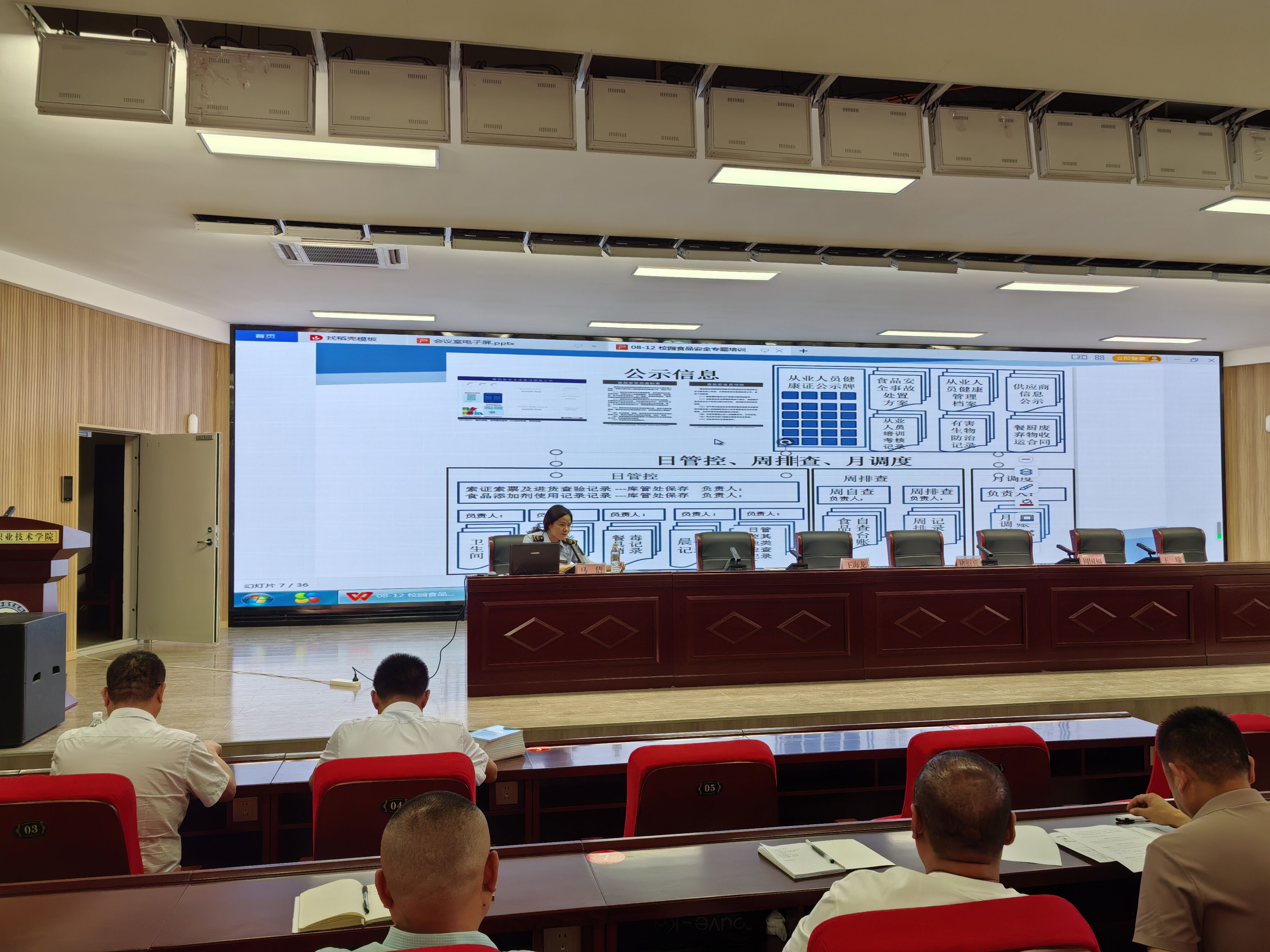 学院副院长褚衍兵结合《关于强化集中用餐单位食堂承包经营食品安全管理工作的通知》文件精神,要求各承包经营单位进一步落实食品安全“四个最严”要求,加强食堂承包经营食品安全管理。培训分三个层级进行,师市场监督管理局第一所监管员马倩、学院后勤服务中心副主任卞建伟分别以《校园食品安全》《食物中毒案例谈餐饮服务食品安全要求》为主题展开一级培训,内容包括从业人员食品安全须知、食品安全基础知识、职业道德、案例分析等;学院后勤服务管理中心工作人员以法律须知、近年来上级部门下发的食品安全类文件及通报、学院食品安全管理规定、食品安全台账及日常管理经验交流等为主要内容进行了二级培训;食品从业企业组织将在未来两天培训包括食品安全法全文学习、各类添加剂的使用规范、食品加工流程、事故案例分析、应急预案及应急演练、从业人员规范、企业管理制度等内容对参培人员进行三级培训。通过分层次培训,提升从业人员的专业素质和食品安全管理水平。