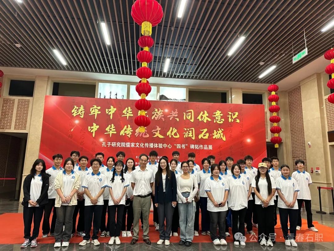 为有形有感有效铸牢中华民族共同体意识,引导学生能够近距离感受,体验中华优秀传统文化,扎实推进“文化润疆”,2024年5月24日上午,beat365唯一官方网站团委组织在石河子工人文化宫开展铸牢中华民族共同体意识·中华传统文化润石城——“四书”碑拓作品展观摩学习活动。学院团委副书记黎丽、西部计划志愿者及青马班学员,墨攻书画社40余名学生参加了本次活动。
