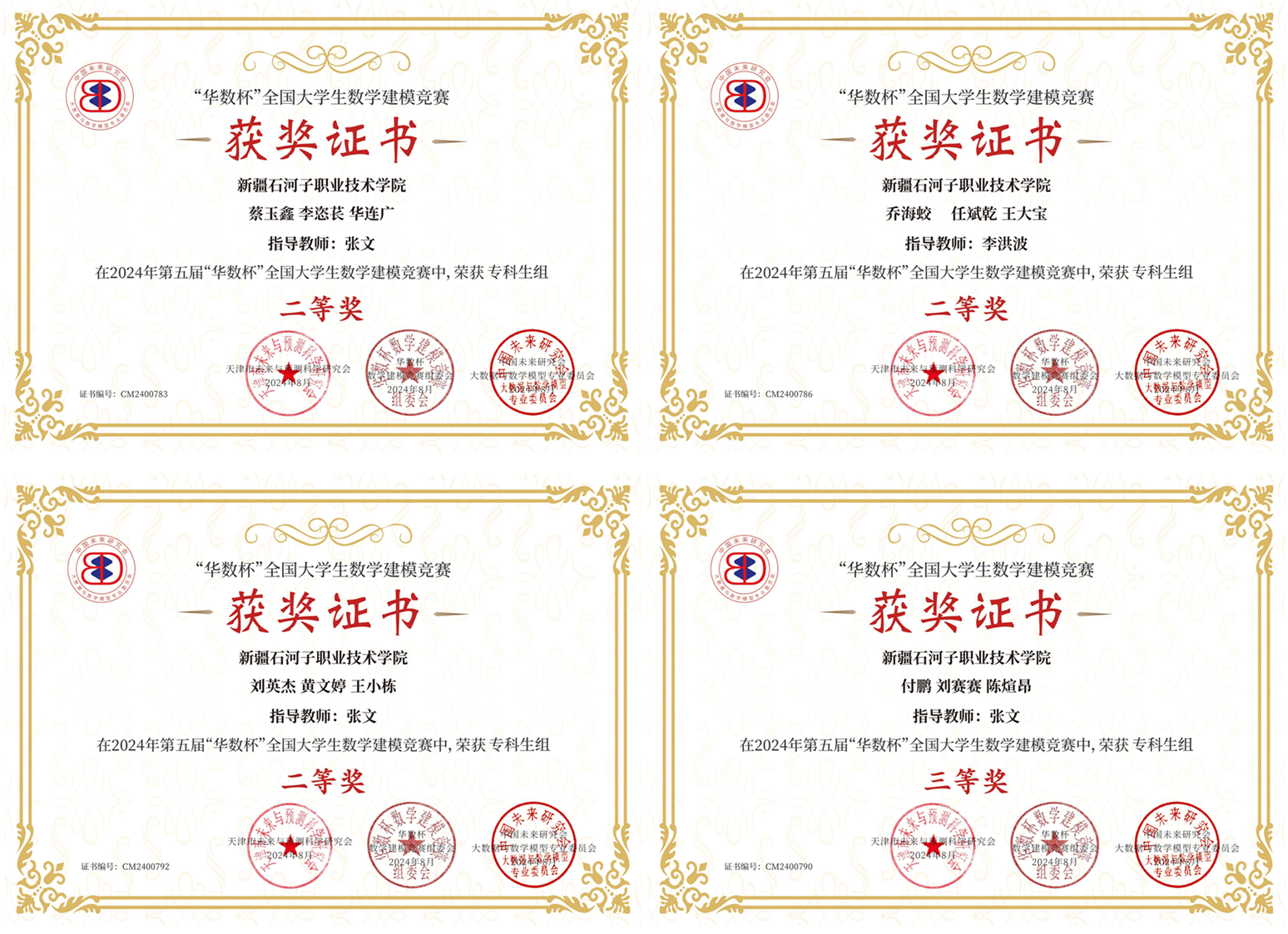 (刘杰 报道)近日,2024年第五届“华数杯”全国大学生数学建模竞赛获奖名单正式发布,我校机械电气工程学院4支参赛队斩获佳绩,喜获全国二等奖3项、三等奖1项。此次竞赛于2024年8月4日至7日在线上举行,吸引了来自全国724所高校的4129支队伍参与,竞争异常激烈。