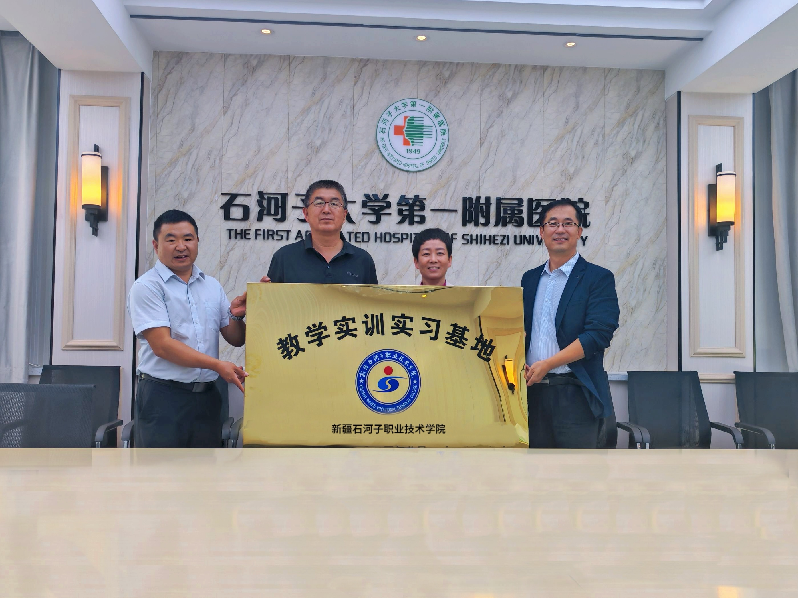 (俞峰 王似雄报道)2024年9月12日,beat365唯一官方网站现代服务学院与石河子大学第一附属医院、石河子市人民医院合作建设的 “教学实训实习基地”正式授牌,未来双方将发挥各自优势,聚焦人才共育、就业方面的需求,发展多维度、深层次合作。