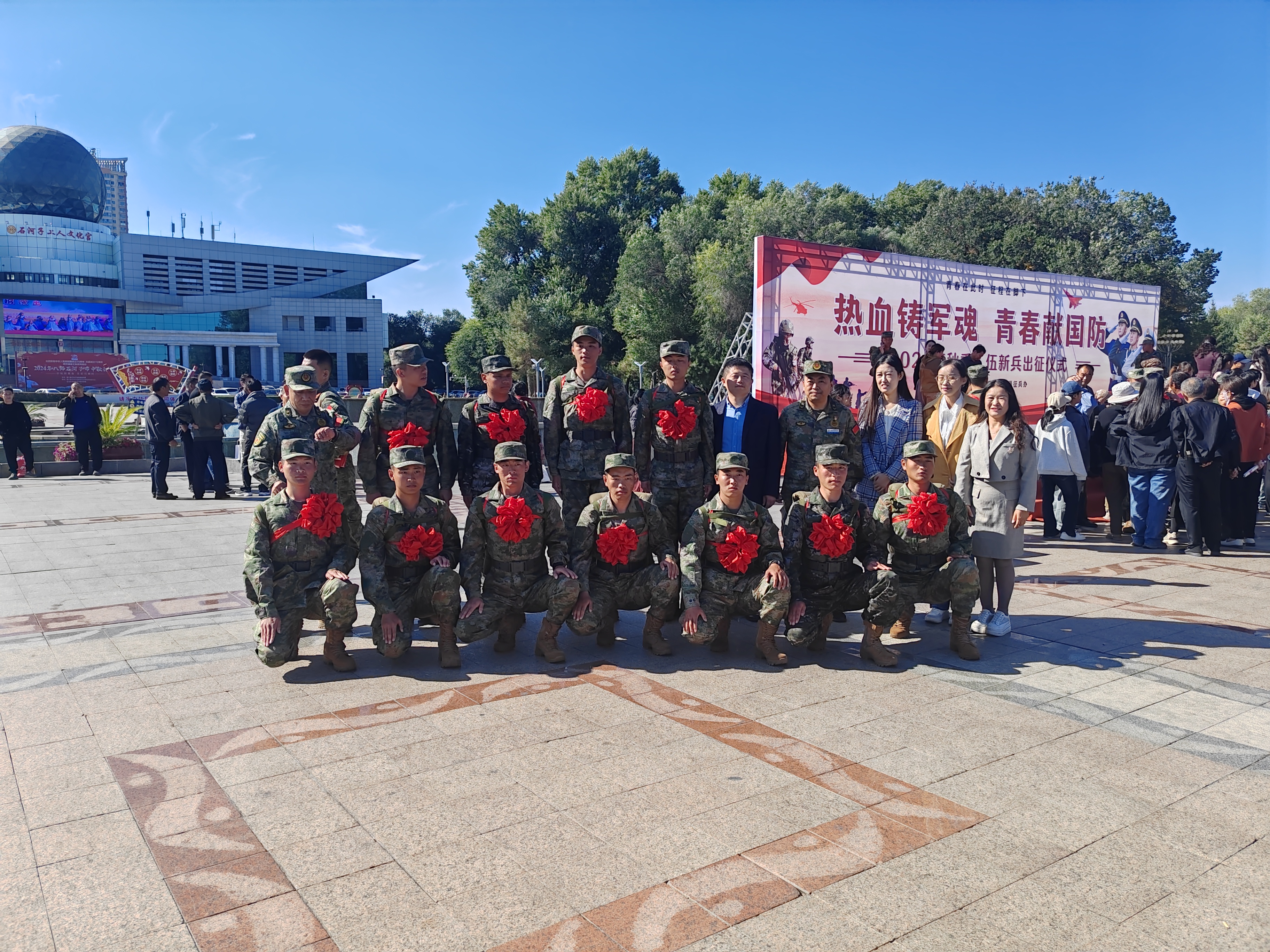 (李德良 崔安琪报道)“用热血绘就青春底色,用奉献诠释使命担当”。9月15日,信息与通信工程学院2022级计算机应用技术专业学生廖鑫晶、2023级计算机应用技术专业学生塔拉尼特·对山拜、2022级数字媒体技术专业学生苏英杰、熊伟成、2022级工业互联网技术专业学生杨永强5位同学,胸佩红花、肩背行囊,在军垦广场参加新兵出征仪式,准备奔赴军营,开启崭新的人生旅程。信息与通信工程学院综合办主任李德良、团总支书记崔安琪、教师代表王莹莹老师及10名学生代表前往观礼,与家长为他们送别。