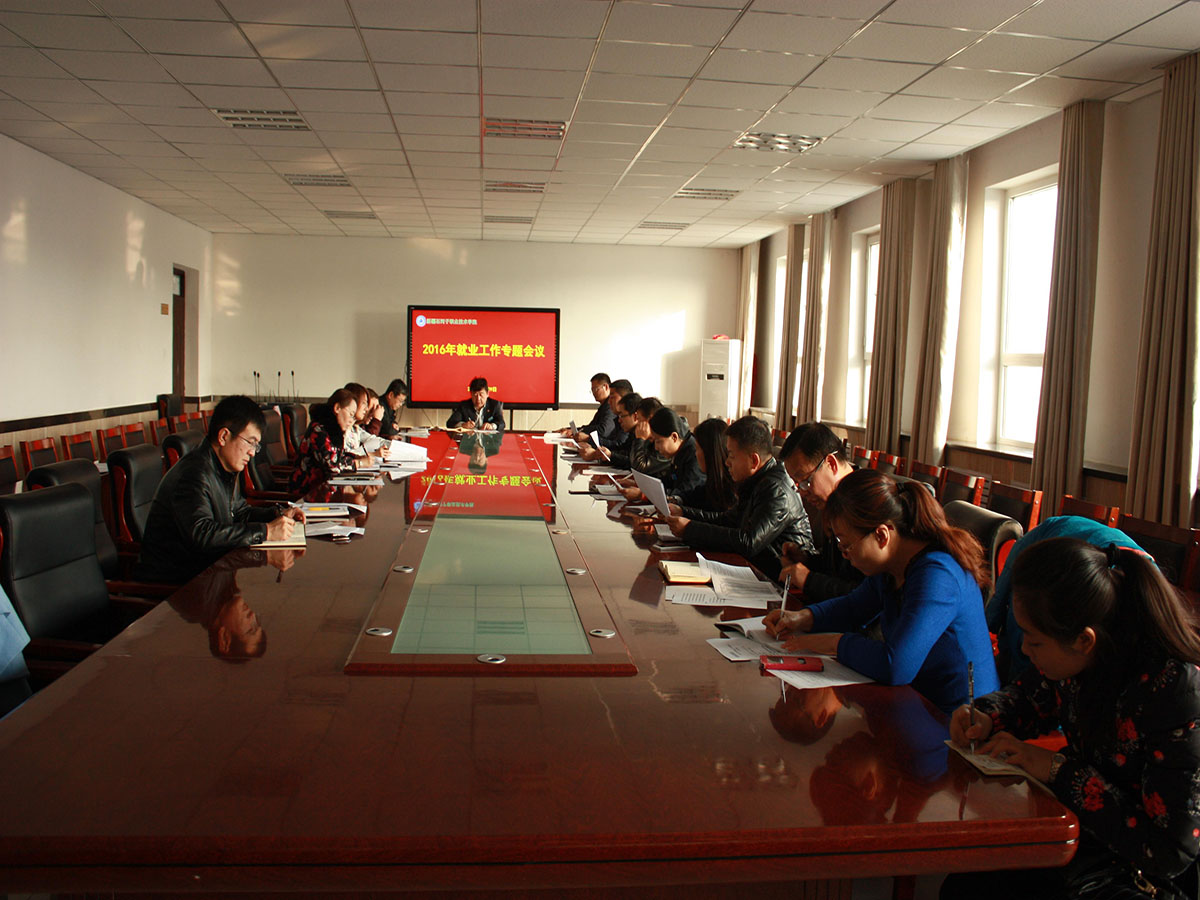 11月9日下午5点,学院在培训中心四楼第一会议室召开了2016年冬季就业工作专题会议,会议研究了毕业生就业工作,并对2017年毕业生顶岗实习工作进行了安排部署。院长王敏弦、副院长王华东、副院长李卫、就业指导中心、各分院分管领导及就业专干参加了会议。会议由学院副院长李卫主持。