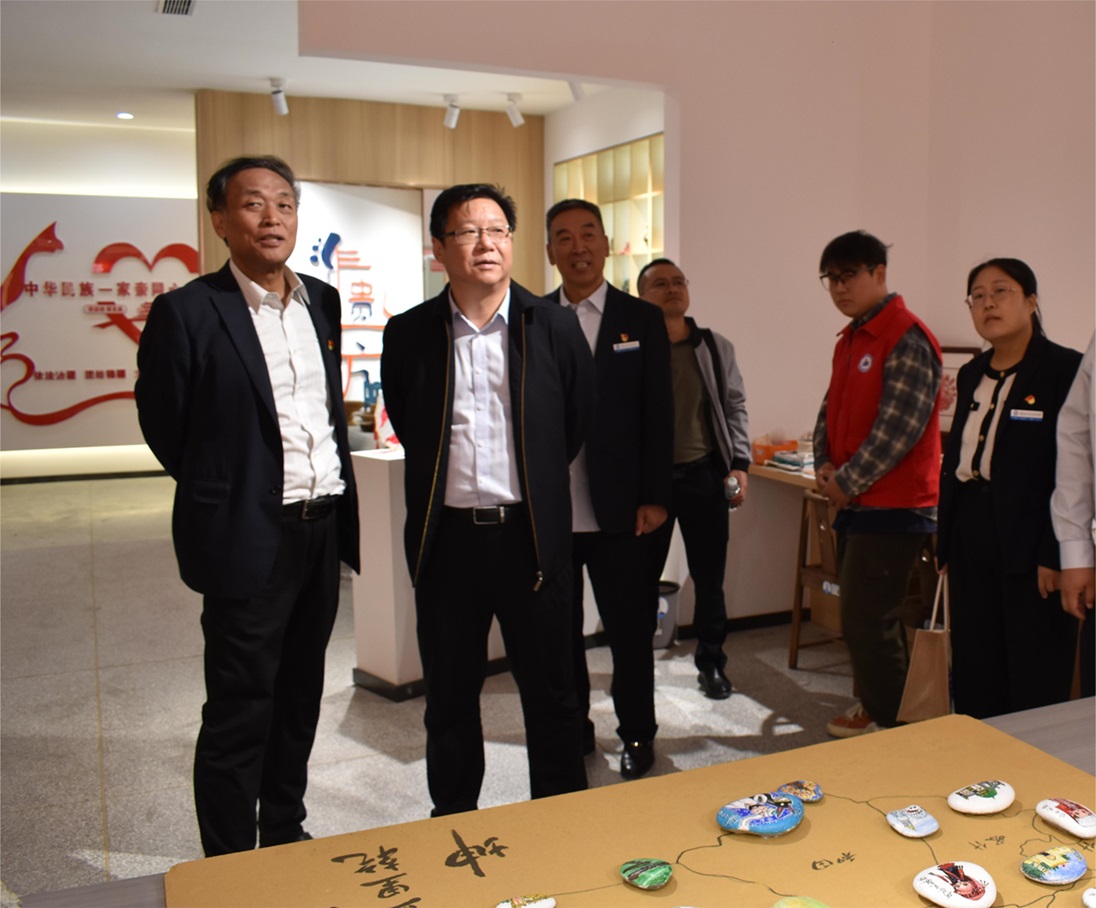 江西现代职业技术学院领导一行参观了铸牢中华民族共同体意识育人基地和沉浸式爱国主义教育基地,史书记结合学院大思政建设和时代铸魂育人工程,详细介绍了学院将爱国主义教育和思政教育融入日常工作的方式,领导一行对学院思政教育理念和在思政教育方面的成就给予了极高评价。在创新创业实训基地、工程实训中心、建筑实体等比例模型教学基地,史书记围绕学院双创育人课程体系的构建、产教融合人才培养模式以及学生创业项目的孵化等方面对学院双创育人的新模式及教学成果的转化进行介绍,领导们对学院专业技能培训方面的高质量标准,以及近年来所取得的显著教学成果给予了肯定。在创新创业学院,领导一行参观了非遗工作室,项目负责学生展示了融合实践、传承与创新精神的剪纸布面背包、具有民族特色的石头画等非遗文创产品,领导们对学生们富有新意的作品表示称赞。参观结束后,陈飞书记希望借助合作办学平台在项目化管理、教师团队建设等方面上探索更多合作形式,共同推动两地职业教育高质量发展。史书记希望通过两校间的合作,能够深化职业教育改革,在各自具有优势的领域推进优势资源共享,进一步加强技能人才培养平台、师资队伍和和特色专业建设,实现资源共享与优势互补的共赢局面,共启职业教育事业发展新篇章。