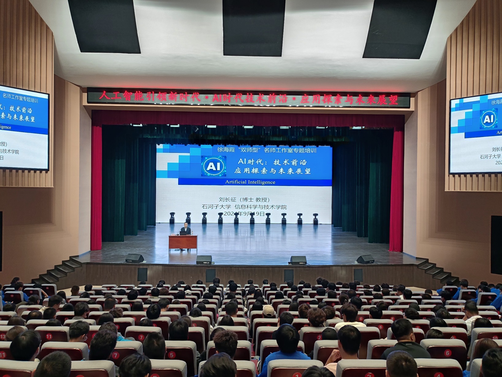(郭昊敏 报道)为引领青年学子紧跟时代步伐,把握时代脉搏,探索AI技术的无限可能,2024年9月19日下午,学院徐海霞“双师型”名师工作室特邀石河子大学信息科学与技术学院副院长、网络空间安全学科领军人物刘长征教授开展以“AI时代:技术前沿、应用探索与未来展望”为主题的专题讲座,为信息与通信工程学院和机械电气工程学院2023级学生们带来了一场智慧与梦想的盛宴。