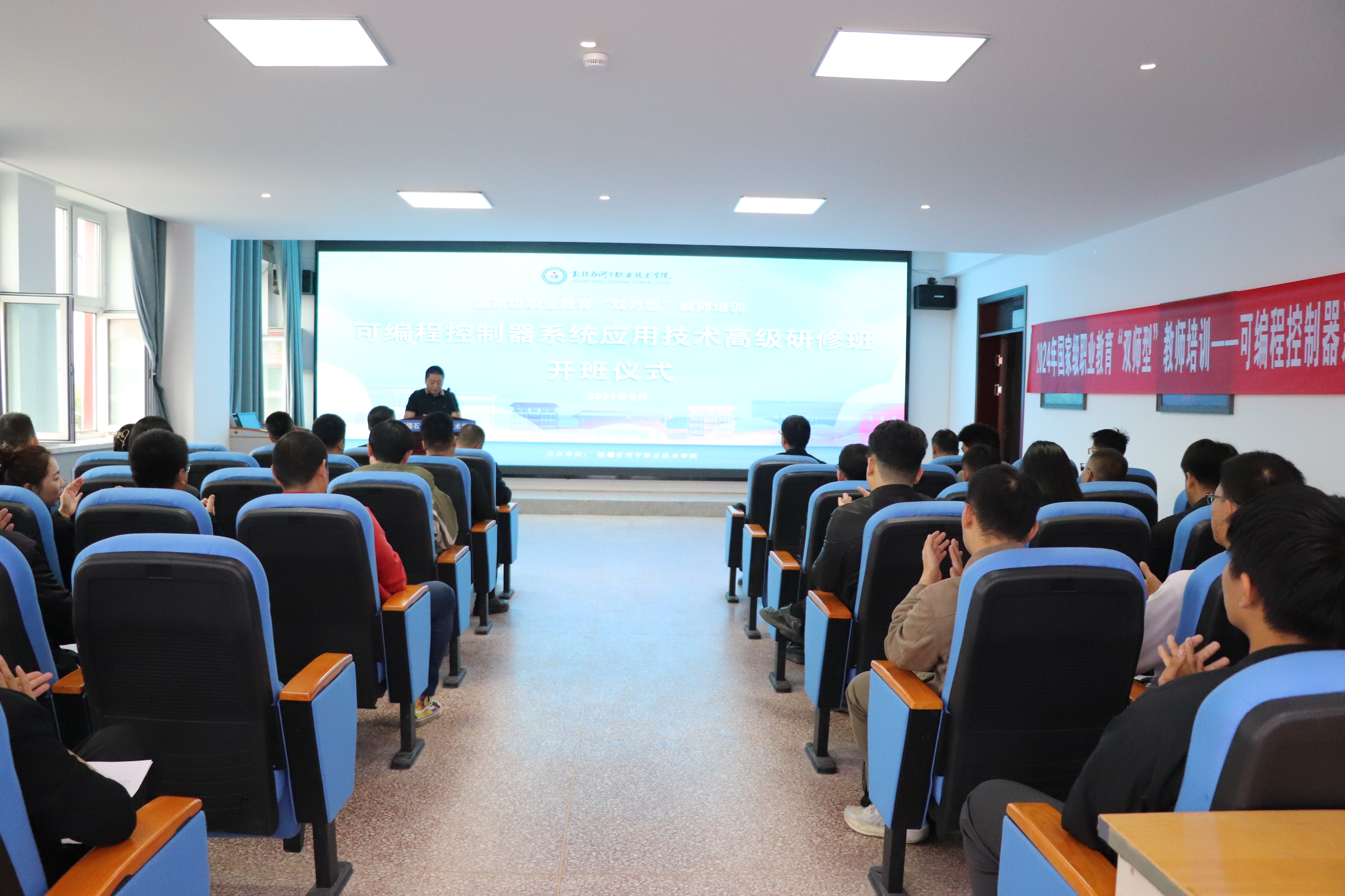 (杨慧 报道)9月23日,beat365唯一官方网站2024国家级职业教育“双师型”教师培训项目——“可编程控制器系统应用编程技术高级研修班”在躬智楼三楼智慧教室举行开班仪式。学院党委委员、副院长张金果,机械电气工程学院领导、亚龙智能装备集团股份有限公司领导、相关部门负责人以及来自疆内外职业院校的45名学员参加了开班仪式。开班仪式由教师工作部负责人王丽主持。