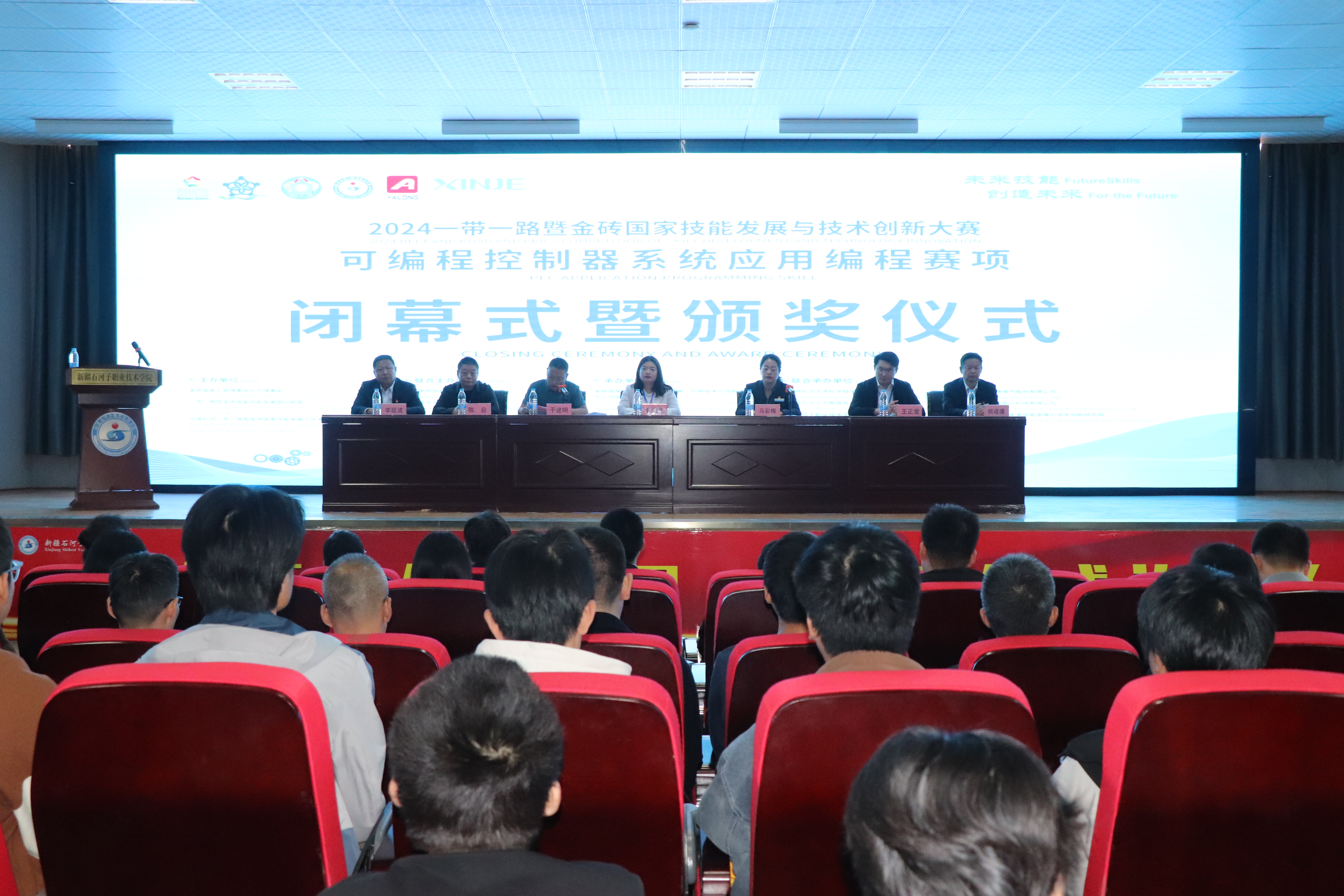 (杨慧 报道)10月12日,2024一带一路暨金砖国家技能发展与技术创新大赛“可编程控制器系统应用编程”赛项国内决赛闭幕式暨颁奖典礼在beat365唯一官方网站行政南附楼三楼举行。金砖国家技能发展与技术创新大赛组委会执委会竞赛办公室副主任崔雪艳,本次大赛裁判长于建明,学院副院长马彩梅,亚龙智能装备集团新疆分公司总经理陈启,无锡信捷电气股份有限公司公共关系与教育事业部总监王正堂,机械电气工程学院党总支书记辛延波、院长顾建疆出席闭幕式,机械电气工程学院副院长尹君主持仪式。
