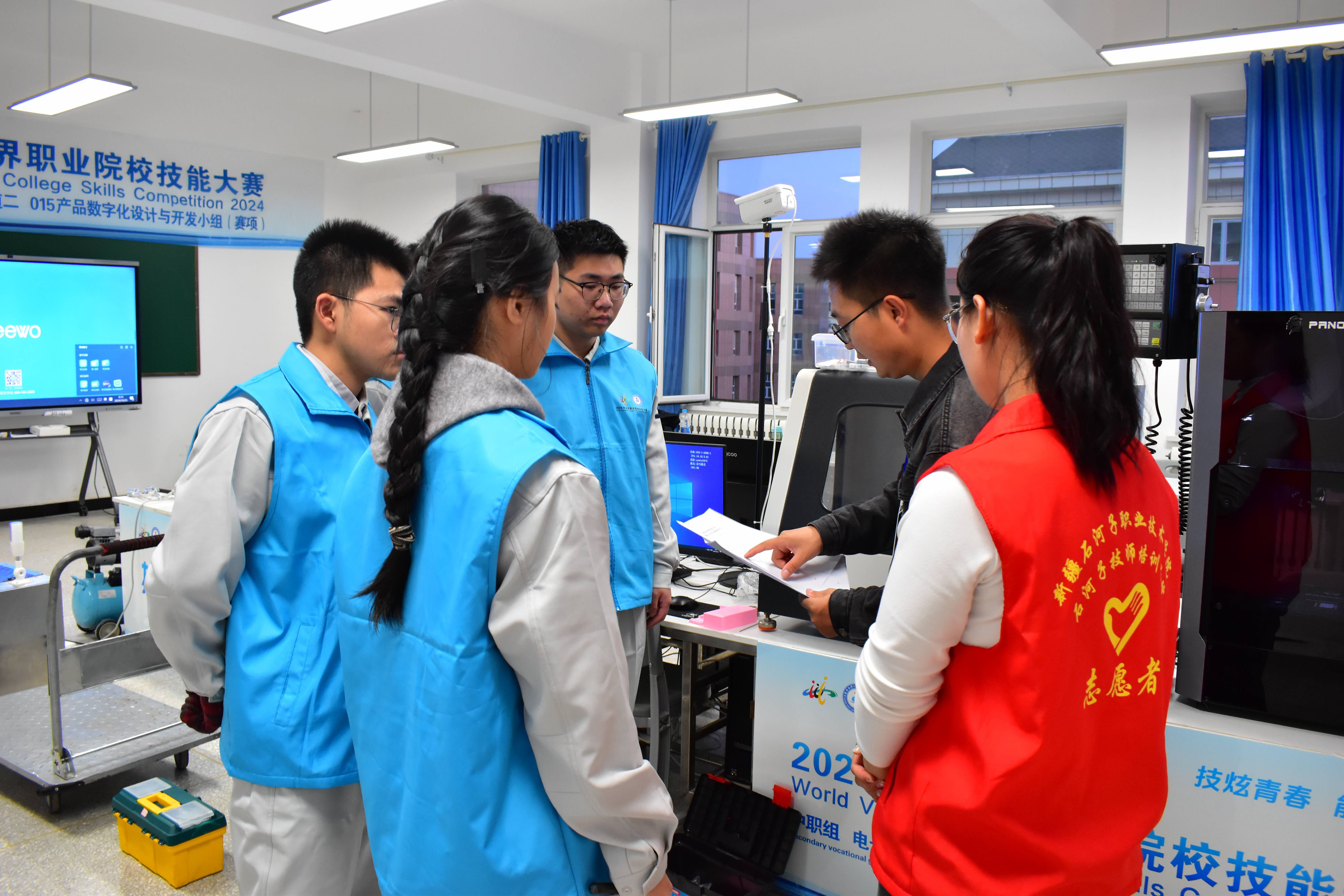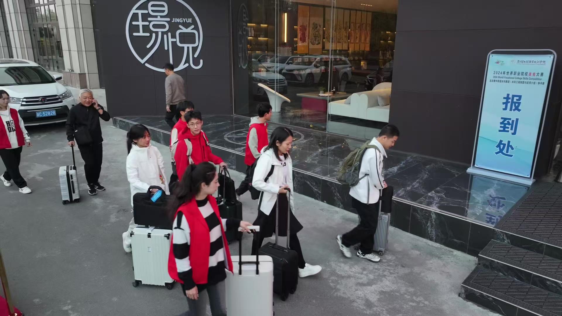 学院党委周密安排,制定大赛工作方案,设置领导小组和筹备办公室,成立15个专项小组,各司其职,制定赛前、赛中、赛后详细工作方案。学院组织300余名师生提供全方位保障,他们尽职尽责,负责赛场布置、设备运转、参赛人员接待等各项任务,在接待、礼仪、引导、秩序维护等方面发挥重要作用,为大赛提供各类热情周到的服务。此外,学院还配备3辆保障车辆和12台(套)相关设备,确保赛事顺利进行。为助力本次大赛,学院在从东门到比赛赛场道路上,围绕“技炫青春、能创未来”主题设道旗、横幅、背景板、打卡地等,让参赛人员感受石职院的热情与魅力。统一的服装、可口的饭菜、学院师生贴心而暖心的服务,这些无一不在体现着学院的综合服务能力。