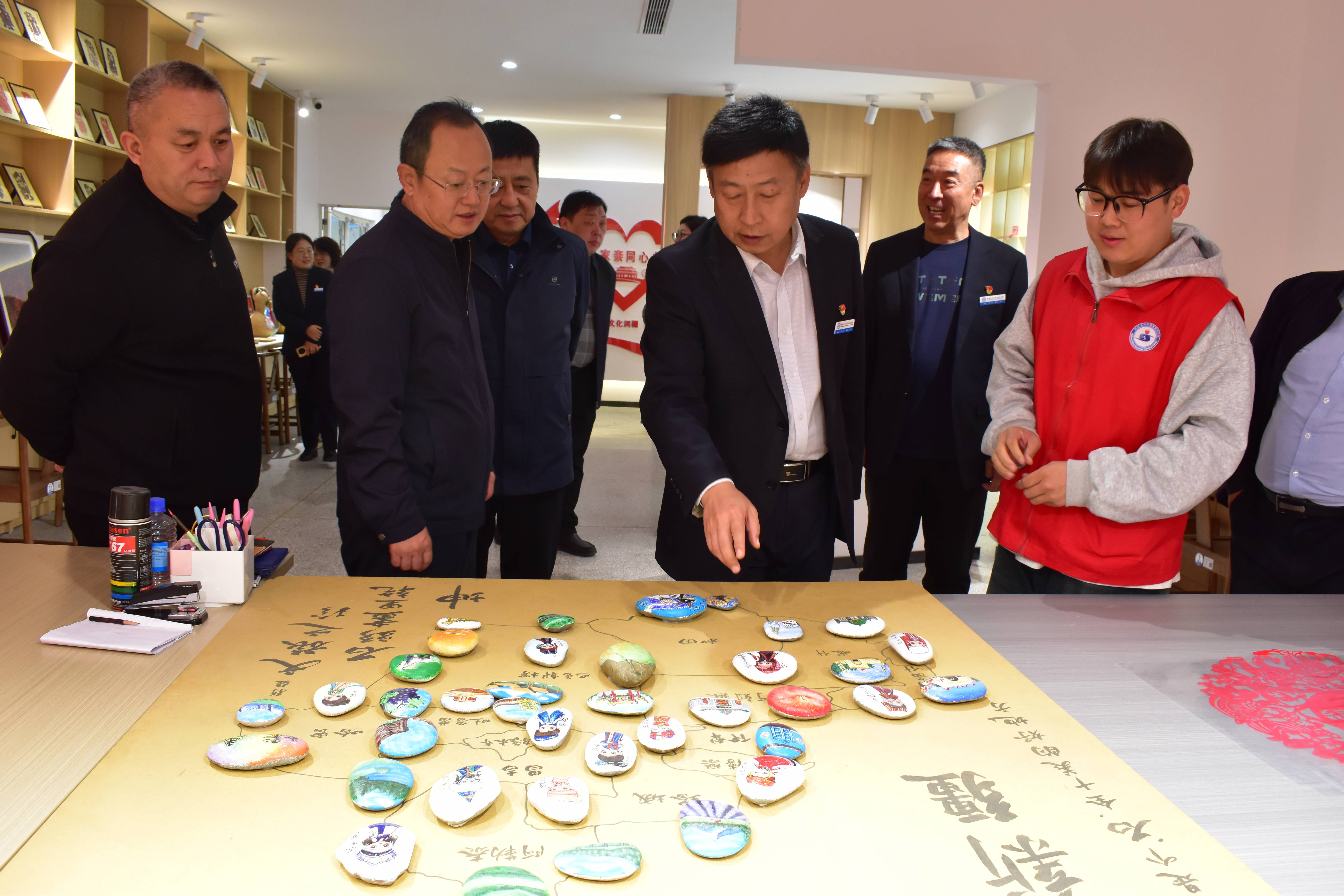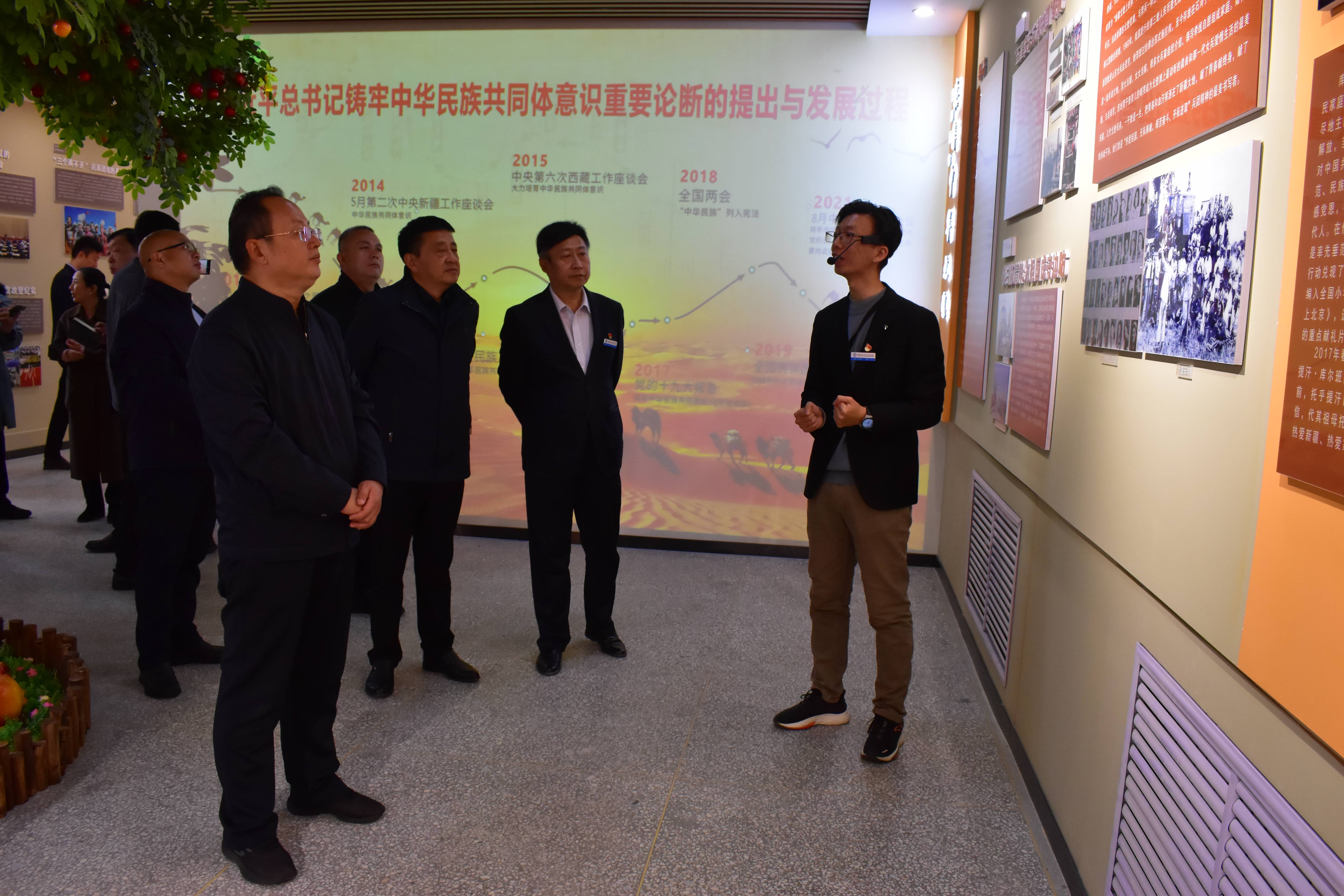 座谈会前,师市统战部及山东省德州市委统战部领导一行参观了学院的铸牢中华民族共同体意识基地、工程实践中心、爱国主义教育基地等地。