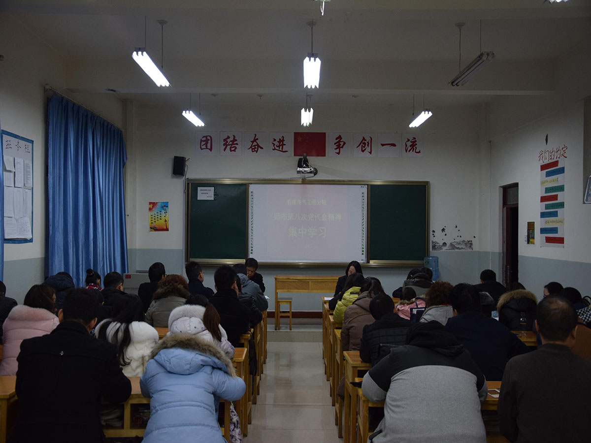 中共第八师石河子市第八次代表大会于2016年10月24日胜利闭幕。按照学院党委统一部署和要求, 11月30日下午,机电分院党总支组织全体党员,认真学习师市第八次党代会精神,安排部署相关工作。