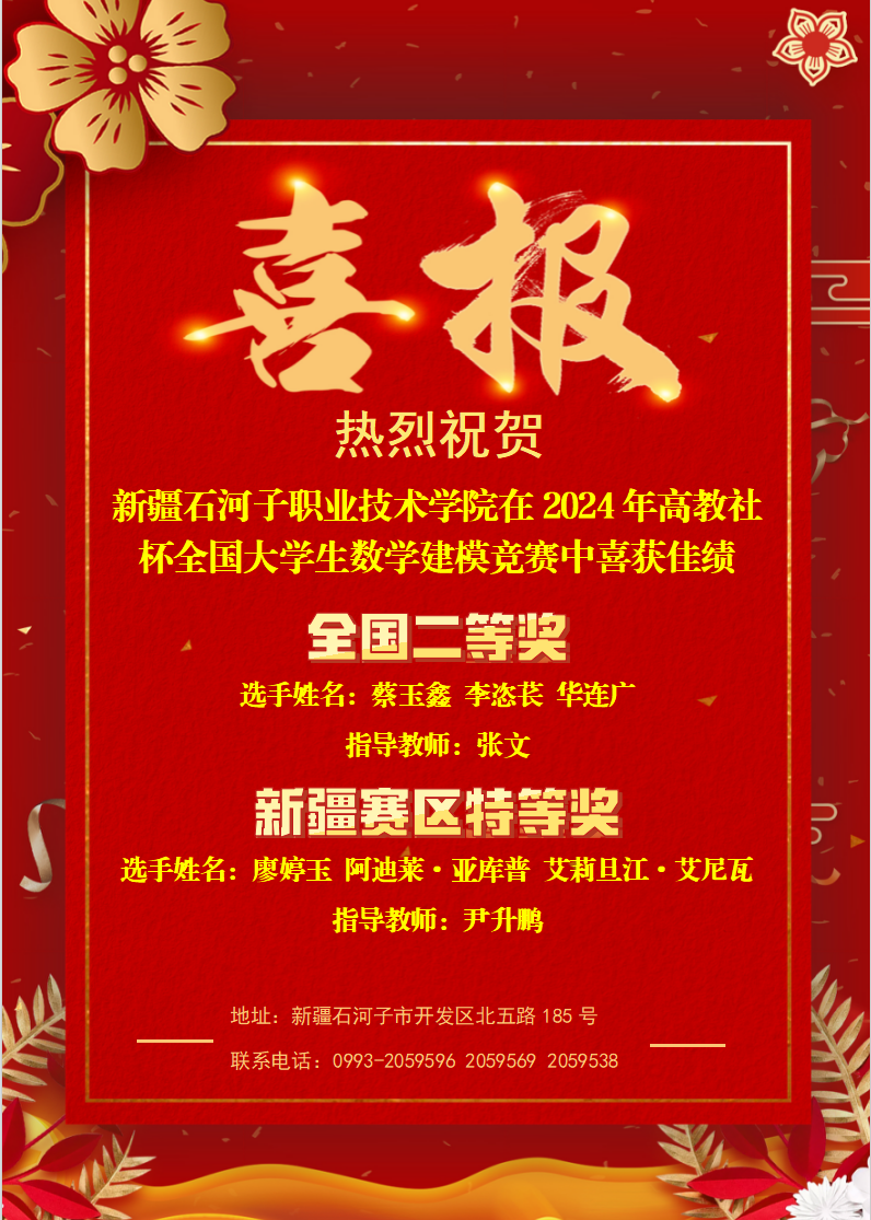 全国大学生数学建模竞赛旨在培养学生的创新意识及运用数学方法和数学软件技术解决实际问题的能力。2024年吸引了来自中国及美国、马来西亚等1788所院校和校区、65761队(本科 59278队、专科6483队)近20万人报名参赛。竞赛中,我校参赛选手充分展现了出色的数学应用能力、创新能力和团队协作能力。面对复杂多变的问题,选手们紧密协作,分工明确,充分发挥各自的优势,结合实际问题构建出准确高效的数学模型,最终在比赛中荣获佳绩。