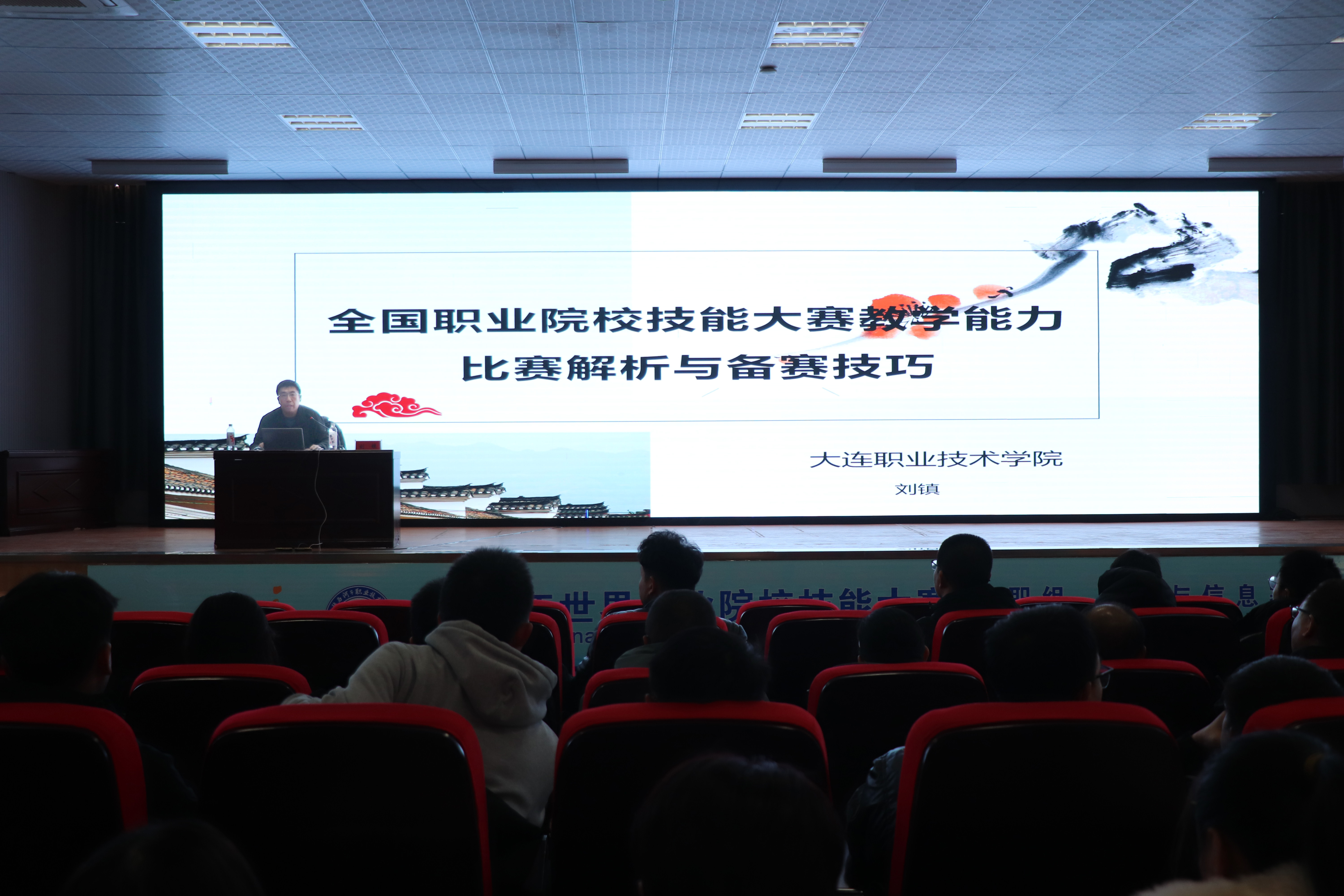 (李玲玲 胡荣报道)2024年12月19日下午,beat365唯一官方网站教师工作部组织主题为“全国职业院校技能大赛教学能力比赛解析与备赛技巧”专项培训活动,活动由学校纪委书记万祥军主持,特邀大连职业技术学院的刘镇教授作为主讲嘉宾,全校近500名教师参加此次培训。