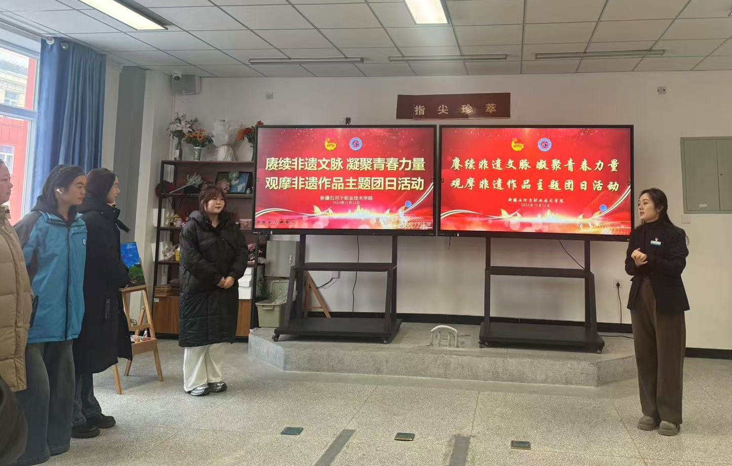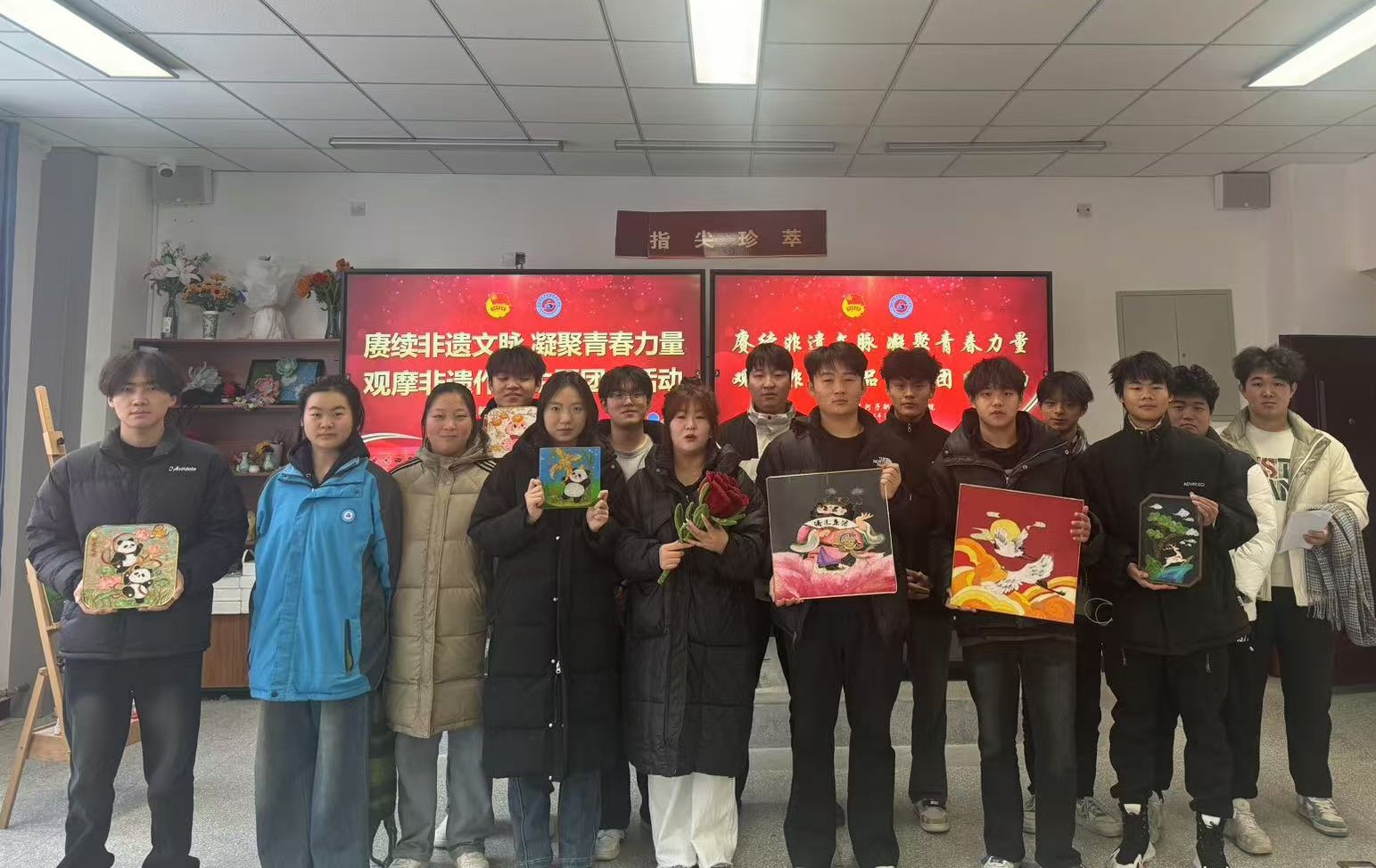 (黎丽 报道)为弘扬和传承非遗文化,进一步增强团员青年对传统文化的认同感和自豪感,成为文化传承的新生力量。2024年12月25日下午,学校团委组织30余名团员在汇智楼B栋207非遗工作室开展“赓续非遗文脉 凝聚青春力量”主题团日活动。