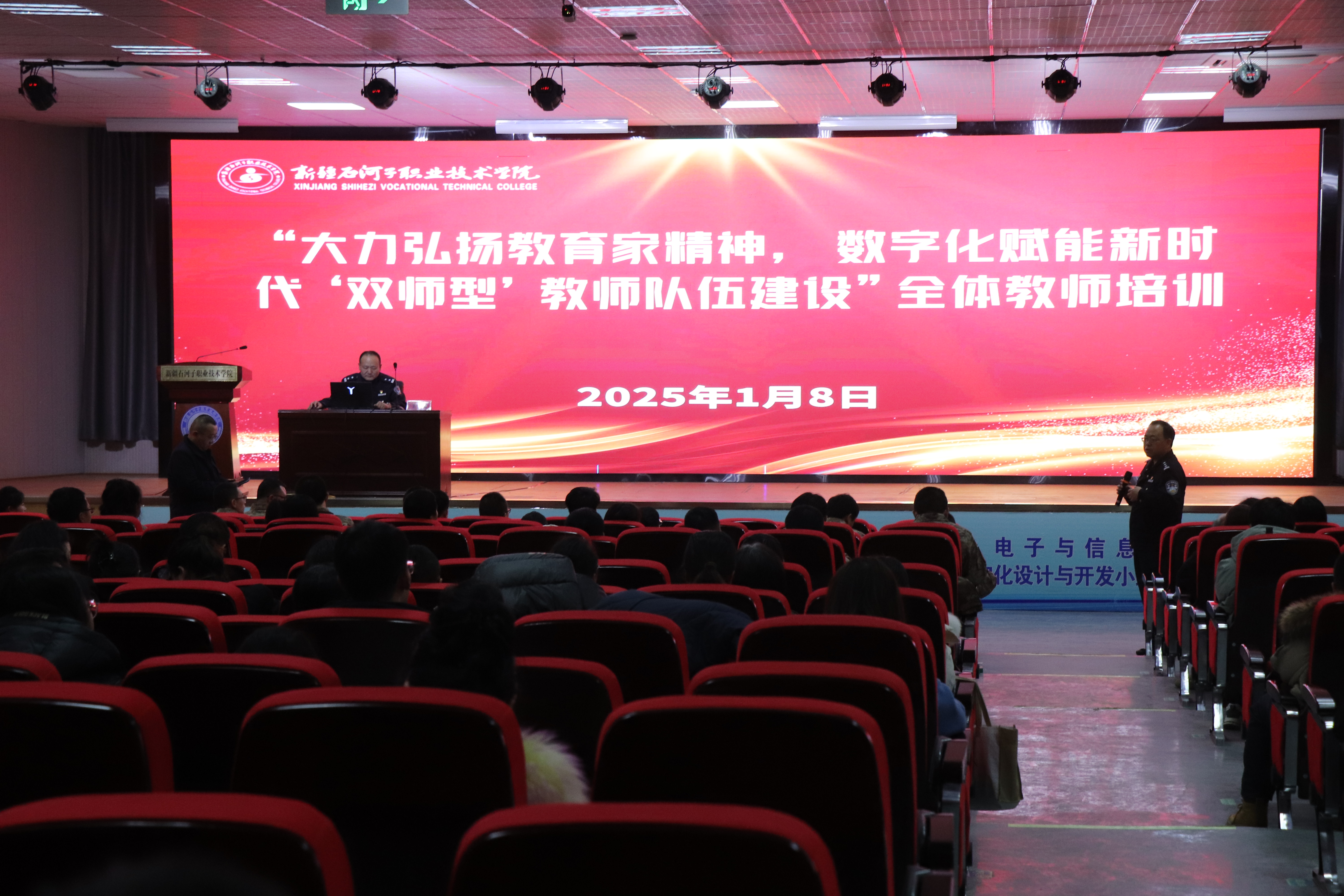 此次培训分为三个阶段,在集中培训阶段,学院邀请了多位校内外专家进行授课。学校纪委书记万祥军以师德师风为主题,强调了教师职业道德的重要性,并激励教师坚守教育初心。乌鲁木齐职业大学沙依白尔·沙吾尔老师以教师职业礼仪为主题,详细讲解了教师在职业场合应遵守的礼仪规范。安徽理工大学教授倪彤探讨了人工智能技术在职业教育中的应用前景,为教师们打开了新的教学视野。