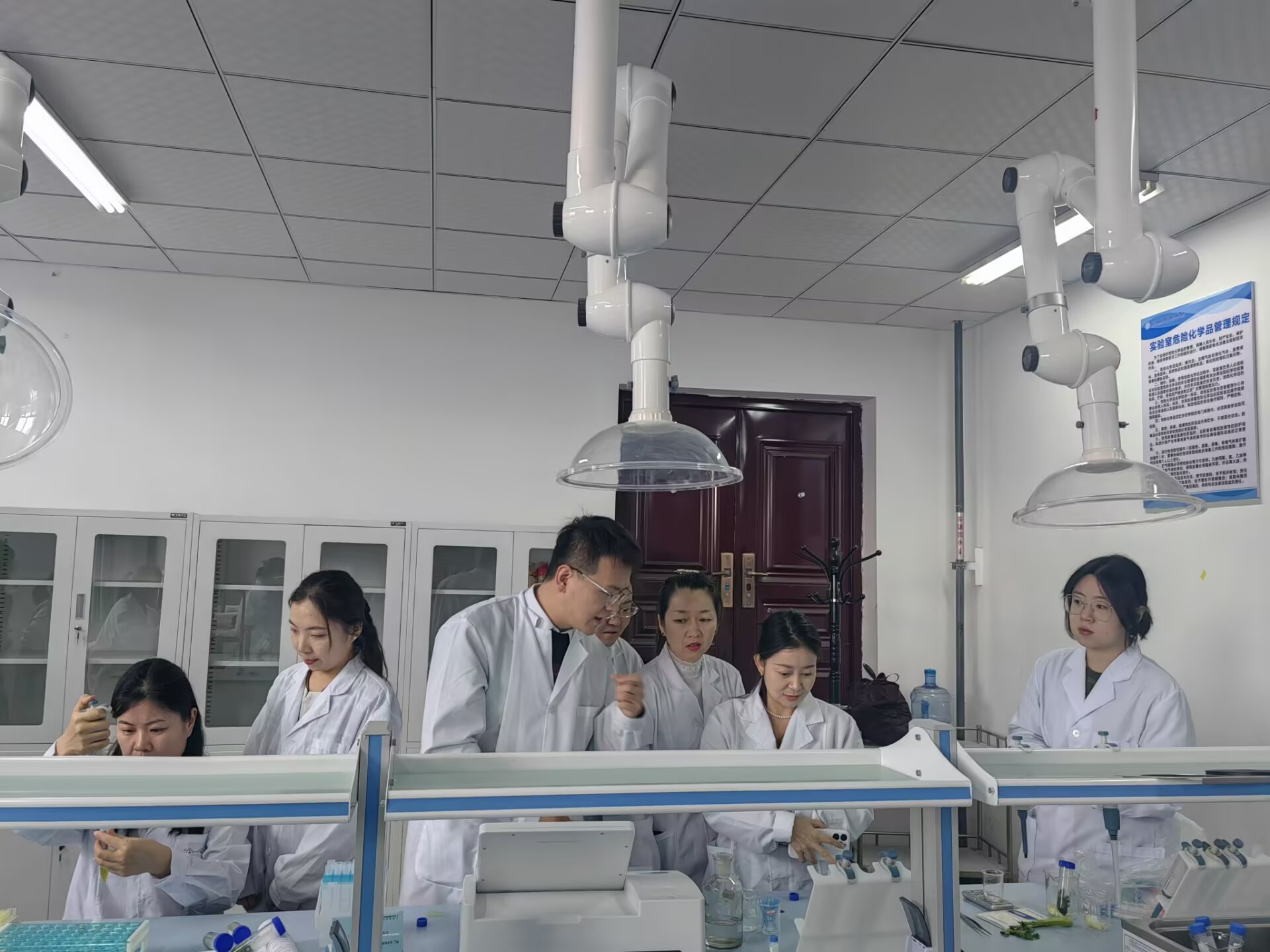 培训教师详细介绍了有机磷和氨基甲酸酯类农药残留的检测原理、方法和步骤。通过理论讲解与实际操作相结合的方式,从样品采集、前处理到仪器分析,参培教师亲身体验了整个检测的流程。通过实际操作,教师们不仅掌握了快速检测的技术要领,还提高了实验操作的准确性和效率。教师们在交流中表示,在今后的教育教学工作中,将不断扩充自己的专业知识,提升自身的教学水平,进一步培养学生的专业实践能力。