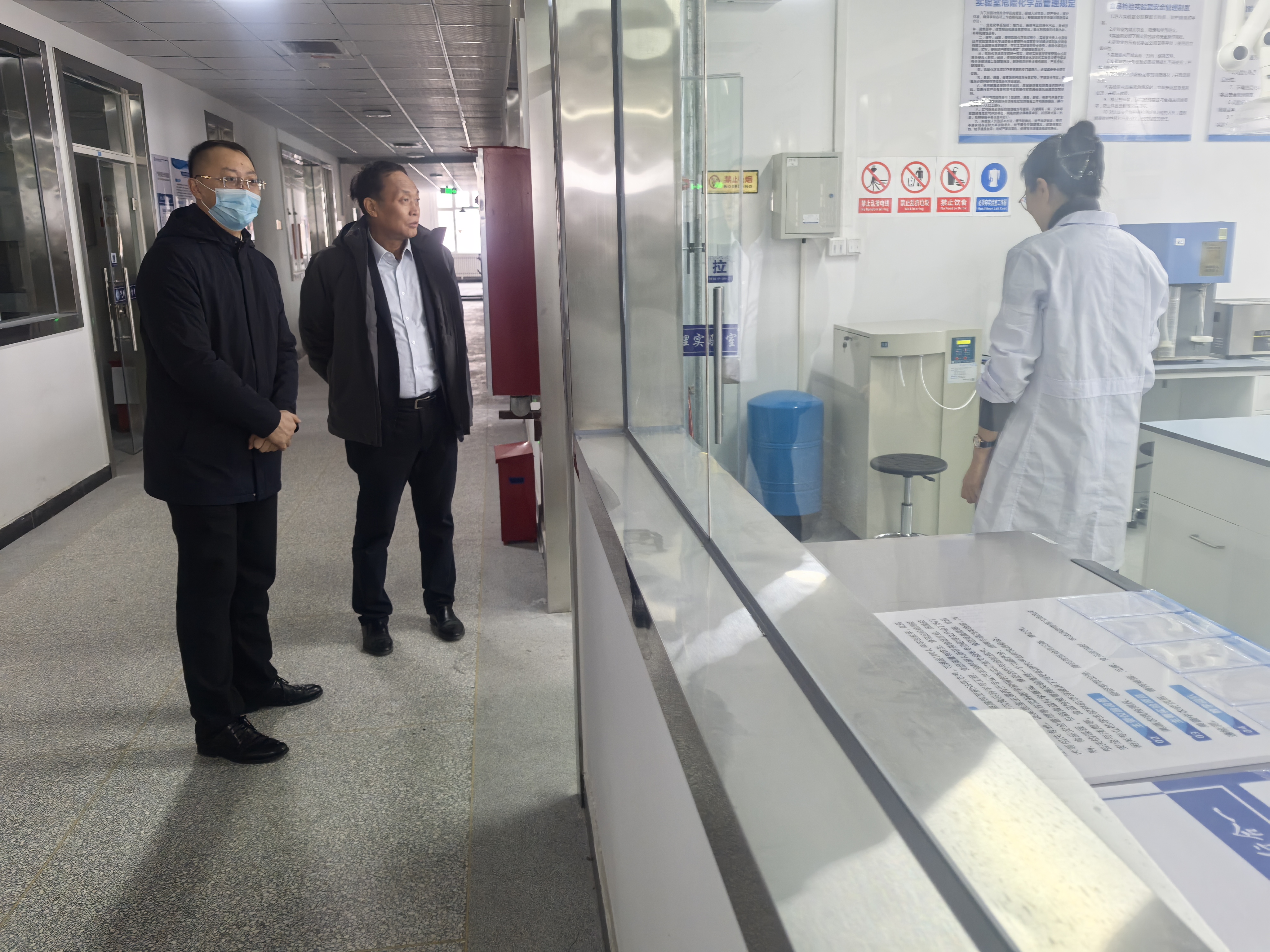 领导一行先后参观了学校监控指挥中心、考务中心、新疆职业院校技能大赛考场、化工与环境工程学院实训室及二期食堂等关键场所。检查过程中,检查小组成员重点对学校的消防设施、监控系统、食品卫生、校舍安全以及应急疏散预案等方面进行了逐一排查。检查人员详细查看了消防器材的配备情况和使用记录,确保消防通道畅通无阻,消防设备能够正常使用。在监控指挥中心,学校相关负责人通过智能化安防系统展示了校园全域实时监控、应急事件处置流程及门禁管理系统的运行情况。考务中心负责人详细介绍了考试组织中的考场设备安全检测及考生服务保障措施;在二期食堂,领导一行实地考察了食材采购溯源、后厨卫生消杀到餐具消毒流程,对食堂透明化管理和食品留样制度落实情况表示肯定;在化工学院实训室,史书记重点汇报了实验室“双人双岗”管理制度、危化品全流程追踪体系及消防设施定期维护情况,系统阐述了学校校园安全治理体系,并表示学校党委表示将严格按照检查组的要求,对存在的问题立即整改,持续提升安全管理精细化水平,为师生提供安全、和谐的校园环境。黄兴副局长对学校安全工作成效给予肯定,并要求学校进一步压实主体责任,完善突发事件应急处置预案,为建设平安校园提供坚实保障。