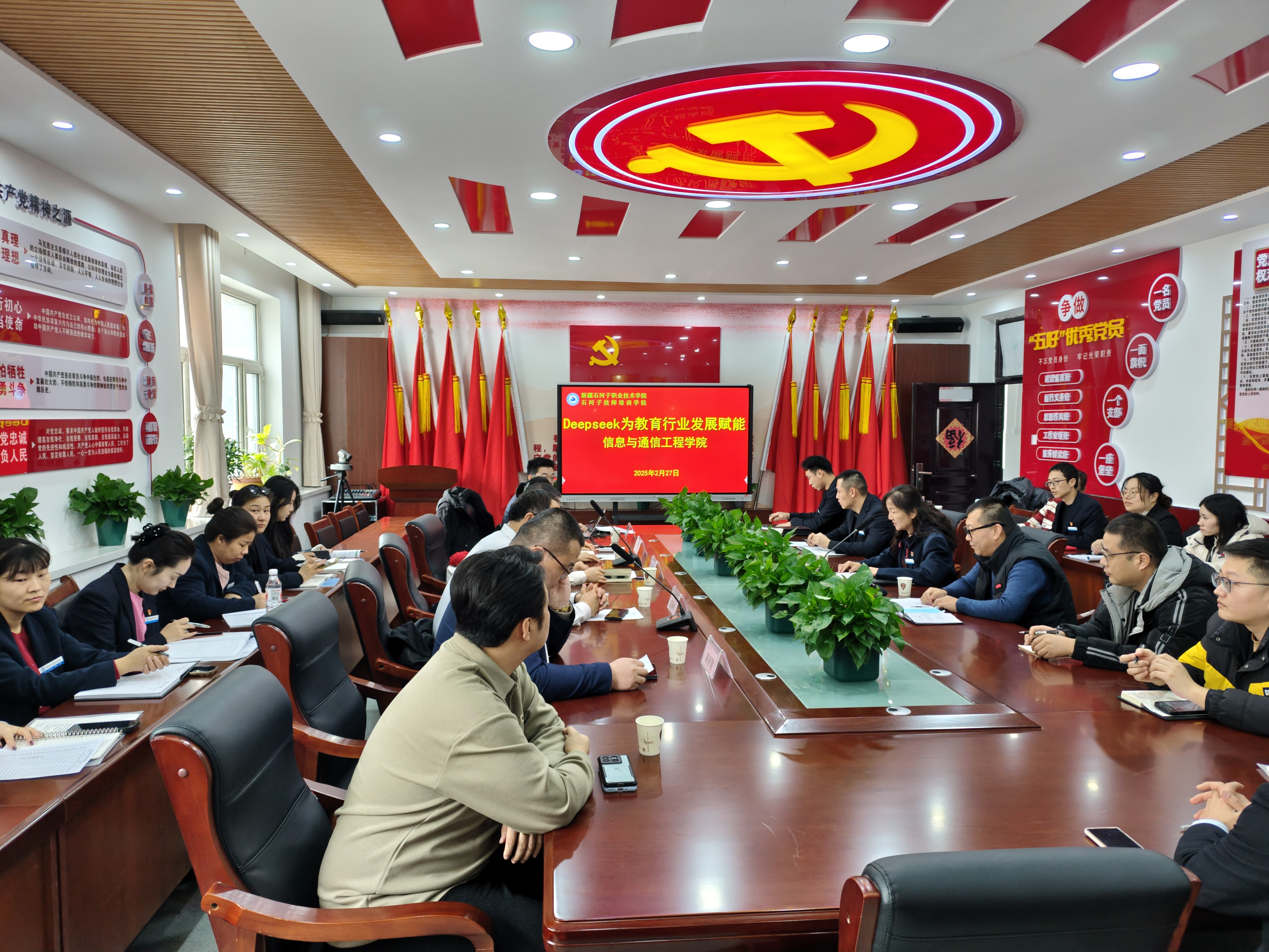 (马杰 报道)2025年2月27日,中国电信股份有限公司石河子分公司与信息与通信工程学院在立智楼207会议室联合举办以“DeepSeek为教育行业发展赋能”为主题的研讨会。中国电信石河子分公司党委委员、副总经理徐正洪一行领导专家及信息与通信工程学院领导和专业教师参加会议。