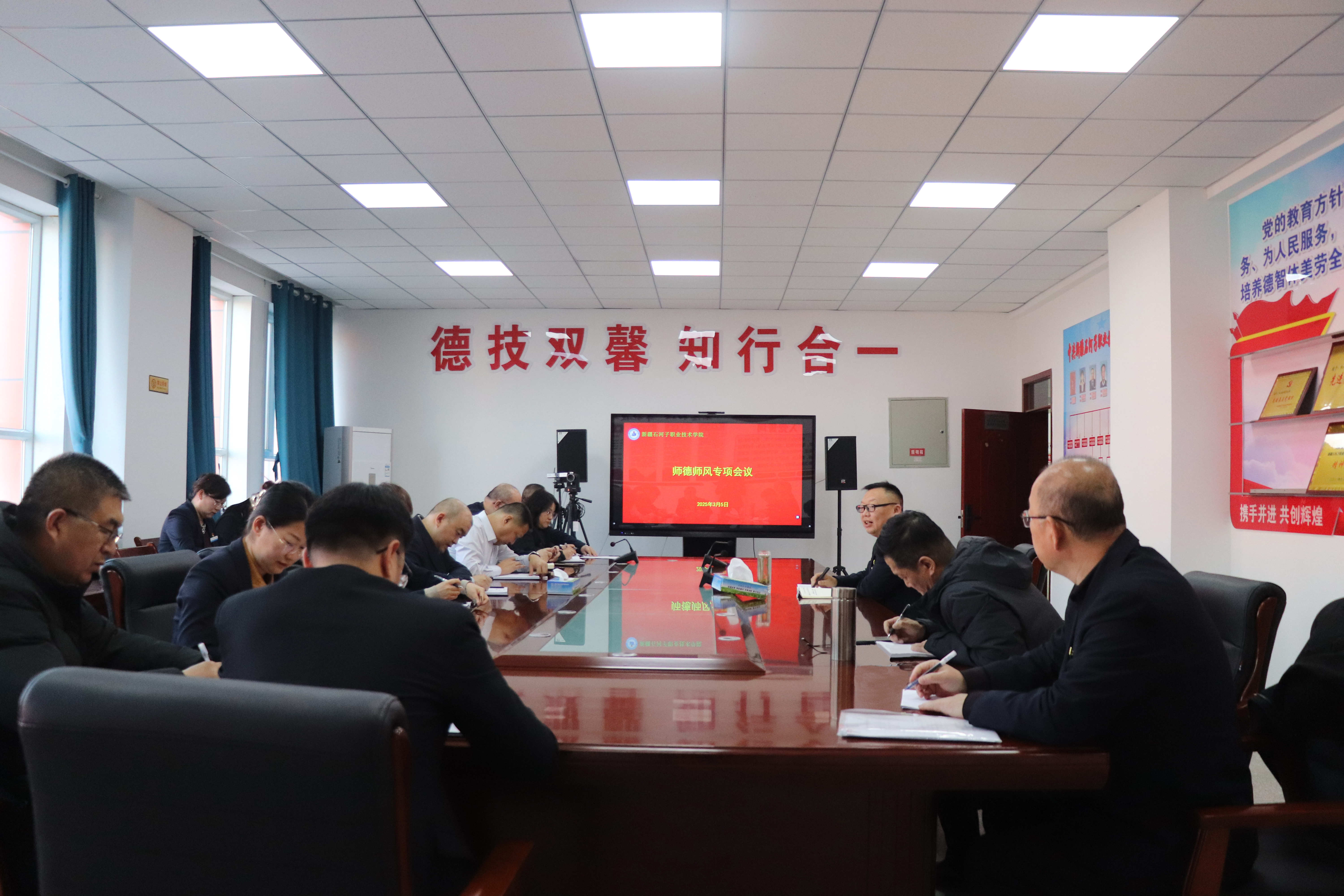 会议上,万祥军书记强调了师德师风建设在学校整体发展中的关键地位。他指出,教师作为学生成长道路上的引路人,其言行举止对学生有着深远影响,优良的师德师风不仅是学校教育质量的保障,更是塑造学生健全人格的重要基石。参会人员就当前学校师德师风建设工作中存在的问题进行了深入探讨,并对下一步工作方向和具体措施展开了热烈讨论。大家一致认为,要通过加强宣传教育、完善考核机制、强化监督管理等多种方式,全面推进师德师风建设工作。最后,万祥军书记对本次会议进行了总结,明确了下一阶段师德师风建设的重点工作方向。要求各部门、各二级学院通力合作,将本次会议要求落实到日常工作中,持续跟踪师德师风建设成效,定期汇报,确保学校师德师风建设工作取得新的更大进展。