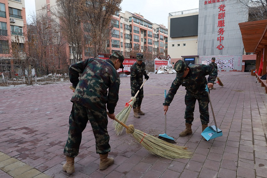 活动当天,军士生们手持清洁工具,分工明确,对社区卫生死角、街道和公共设施进行全面清扫。大家不怕脏、不怕累,干劲十足,认真清理每一处杂物和垃圾。经过几个小时努力,社区环境焕然一新,居民们纷纷点赞。在打扫卫生的同时,一部分军士生协助社区民警进行反诈骗宣传,他们深入社区居民家中挨家挨户向居民发放精心制作的反诈宣传手册,结合真实案例,用通俗易懂的语言讲解常见诈骗手段和防范方法,提醒社区社区居民保护好个人财产安全,遇到可疑情况及时报警。军士生认真负责的服务态度和良好的精神面貌受到社区居民的一致好评,纷纷表示军士生们的讲解让自身对诈骗手段有更清晰认识,提高了防范意识。军士生们怀着崇敬之情来到社区老兵家中慰问,老人精神矍铄,为大家讲述了兵团初建时期的艰难岁月以及身边战友的感人故事。军士生们围坐在老兵身边,认真聆听军垦先辈们屯垦戍边的光辉事迹,深刻感受到了兵团精神的内涵。