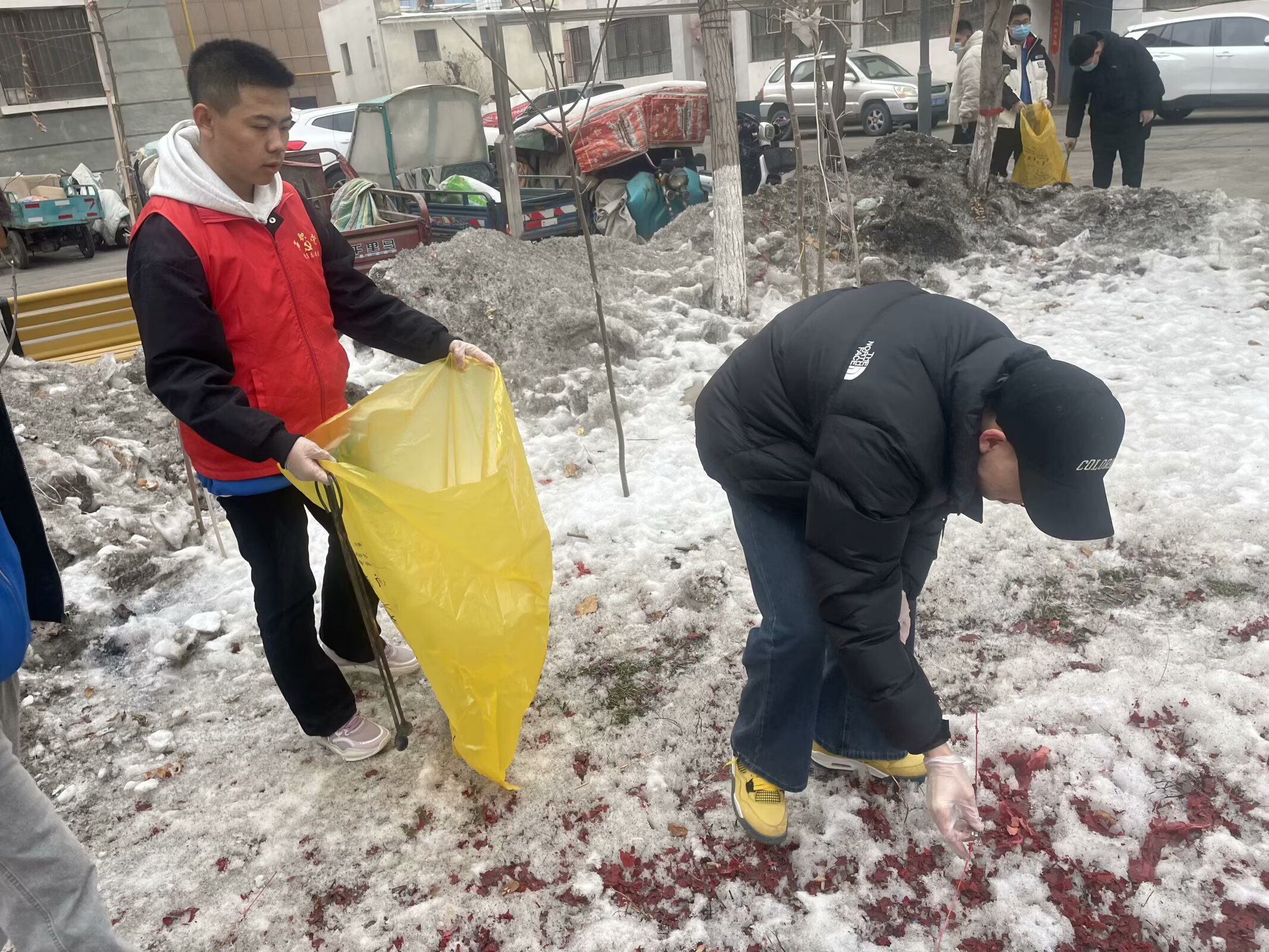 活动当日,志愿者们迅速投身清洁工作。大家分工明确,有条不紊:有的专注清扫街道上的灰尘与杂物,有的俯身仔细捡拾绿化带内的烟头、塑料袋等垃圾,有的认真清理墙角的杂草与卫生死角,还有的负责将装满垃圾的袋子搬运至指定地点倾倒。在志愿者们的努力下,社区环境得到了显著改善。