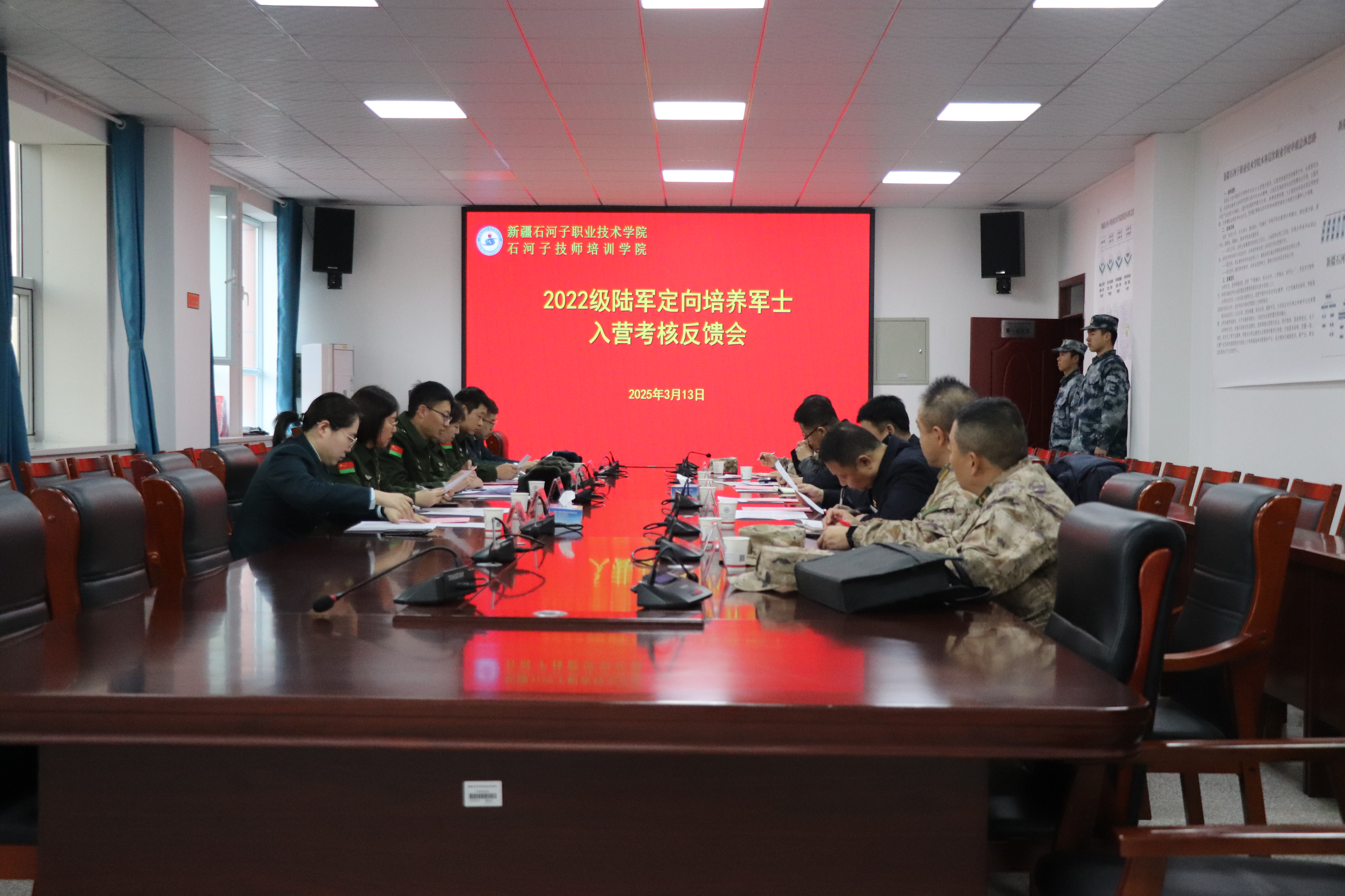 为了确保考核工作全程、全域安全顺利,学校联合陆军接兵学校召开考核工作工作协调会,学校林炯院长、张金果副院长,机械电气工程学院、军士学院及各相关职能部门负责人参会。会上,学校各部门向考核组全面汇报了此次考核准备工作,双方就考核工作交流了意见。此次入营考核着重考察陆军定向培养军士学员文化基础、专业理论、专业技能3项内容。