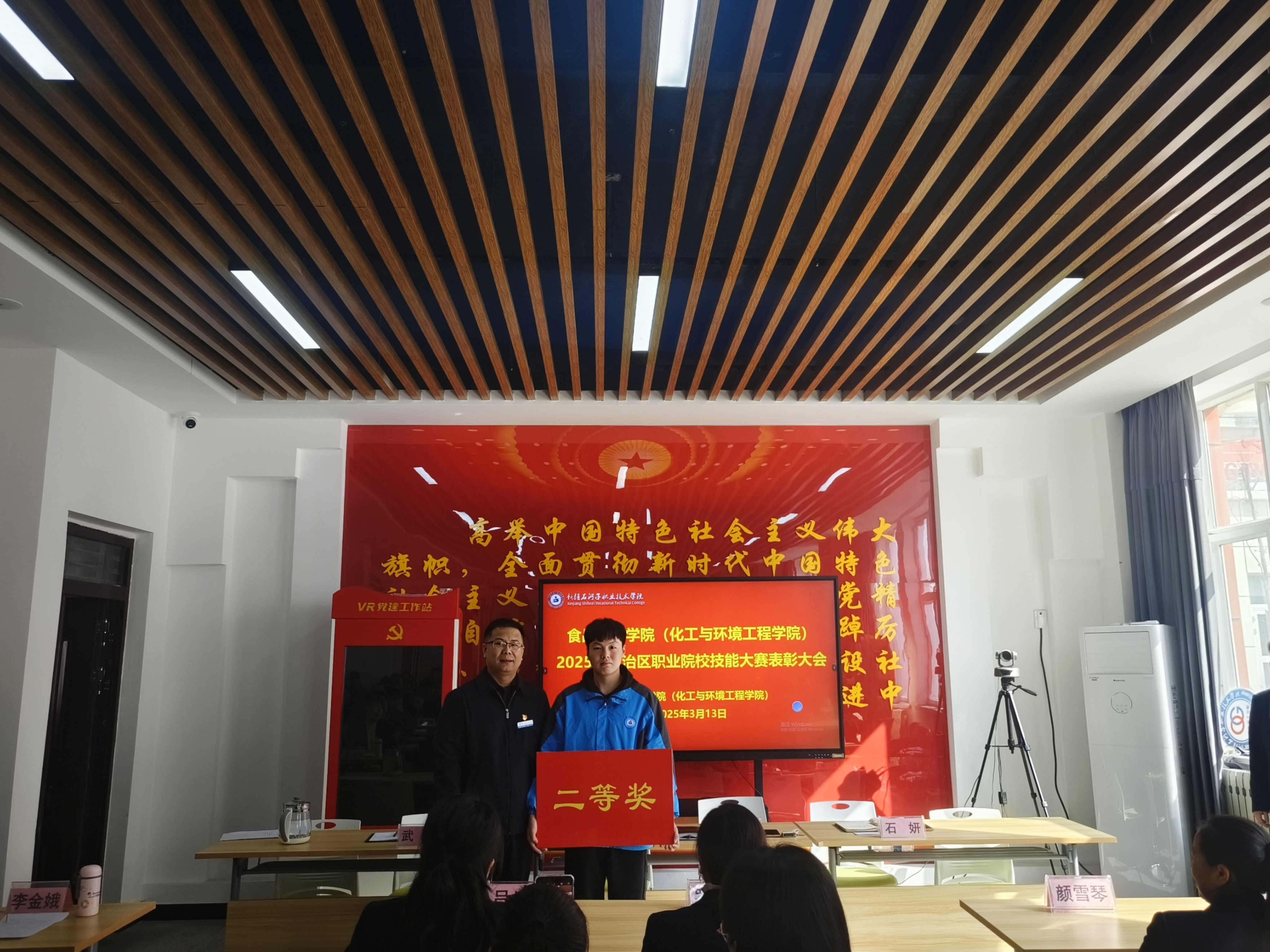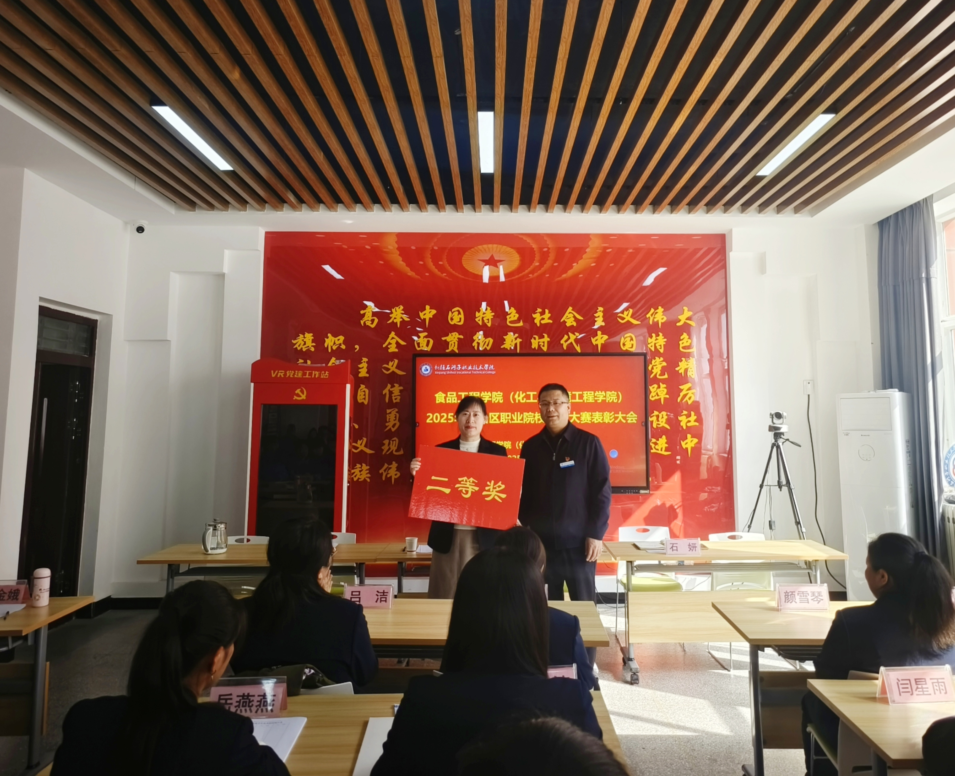 (赵燕燕 报道)3月13日,食品工程学院(化工与环境工程学院)在鸿智楼B104党建活动室开展2025年职业院校技能大赛表彰大会。beat365唯一官方网站副院长张金果,食品工程学院(化工与环境工程学院)党总支书记李晓华、副院长武亮、石妍及全体师生代表共同参会。