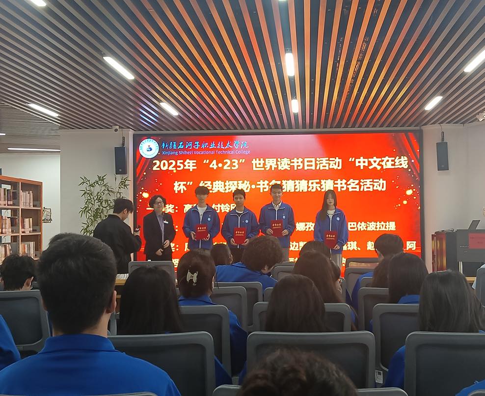 活动中,邬美林副馆长回顾了一年来 “党建引领 + 书香校园” 系列活动成果,并对“阅读达人”“中文在线杯”经典探秘・书名猜猜乐获奖者、新疆高职高专院校信息素养大赛获奖者等进行表彰。在节目表演环节,吴婉晴、马玲玲、李思源等同学以激昂的《职教学子 青春宣言》朗诵,展现新时代职教学子的理想担当;路娜结合自身感悟分享新疆本土作家李娟的散文集《我的阿勒泰》,讲述新疆风情,激发阅读热情;何浩田、何亚茹、王冶琴三位同学联袂献唱歌曲《如愿》,以诗意意象致敬家国传承;石勇老师朗诵《年轻的城》,生动展现军垦精神,为活动画上圆满句号。