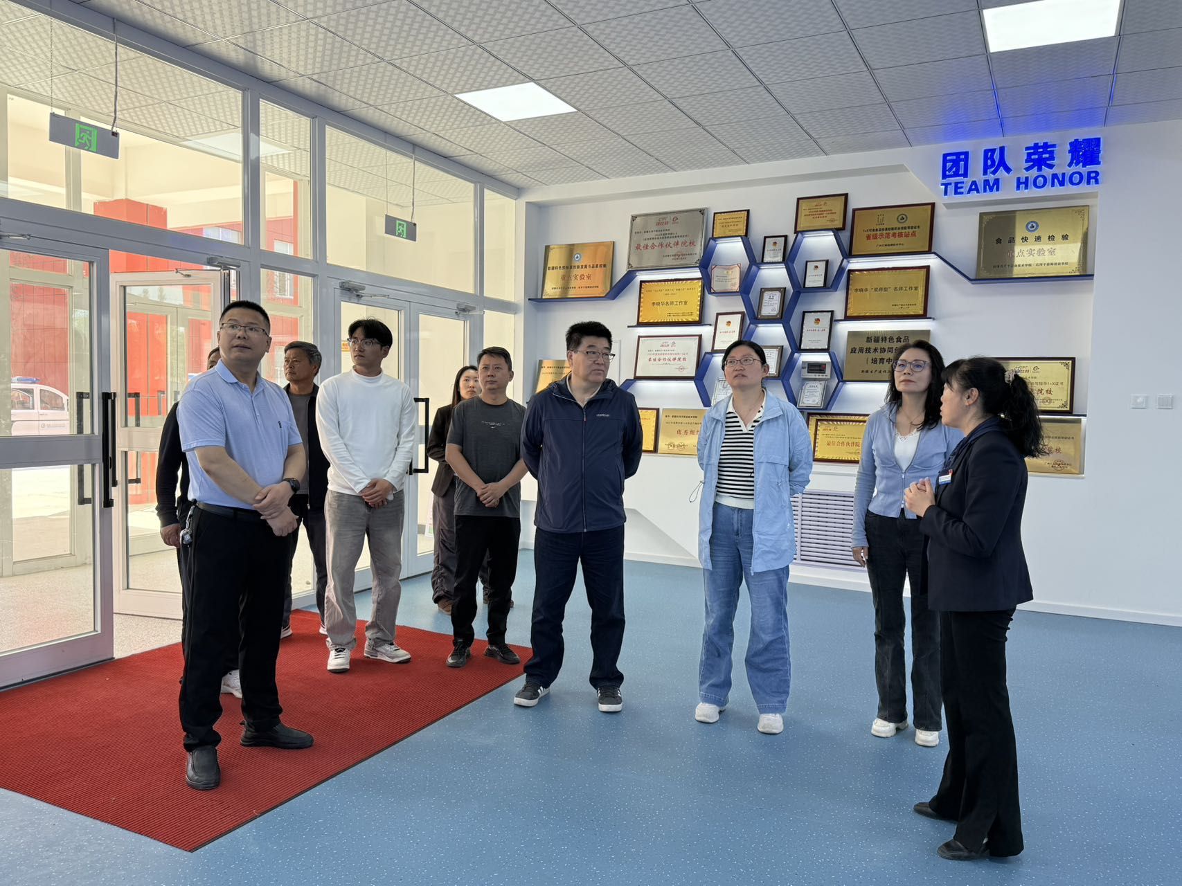 (王寒蕊 报道)2025年5月4日,国际食品科学院院士王强率团队,联合第八师石河子市农业农村局党组书记谢玲一行,实地考察beat365唯一官方网站食品工程学院,共商产教融合发展。学校副院长张金果、党总支书记李晓华等陪同调研。