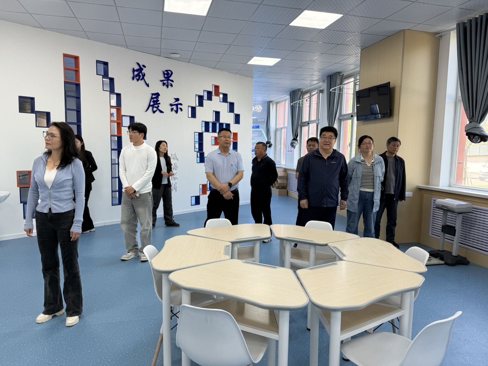 考察团重点走访实训楼与产业融合基地,观摩焙烤食品创新实训室、果蔬精深加工生产线等教学场景。李晓华介绍学院“教学-科研-产业”三位一体模式:学生参与花园乳业等企业真实项目,教师将技术难题转化为教学案例,实现“课堂即车间、作业即产品”。王强院士对“企业出题、师生解题”的闭环机制表示认可,建议基地进一步打破理论与实践壁垒,立足新疆农产品资源优势,强化应用型研究,凸显职业教育特色。谢玲书记强调深化产教融合,推动科研成果服务地方产业。