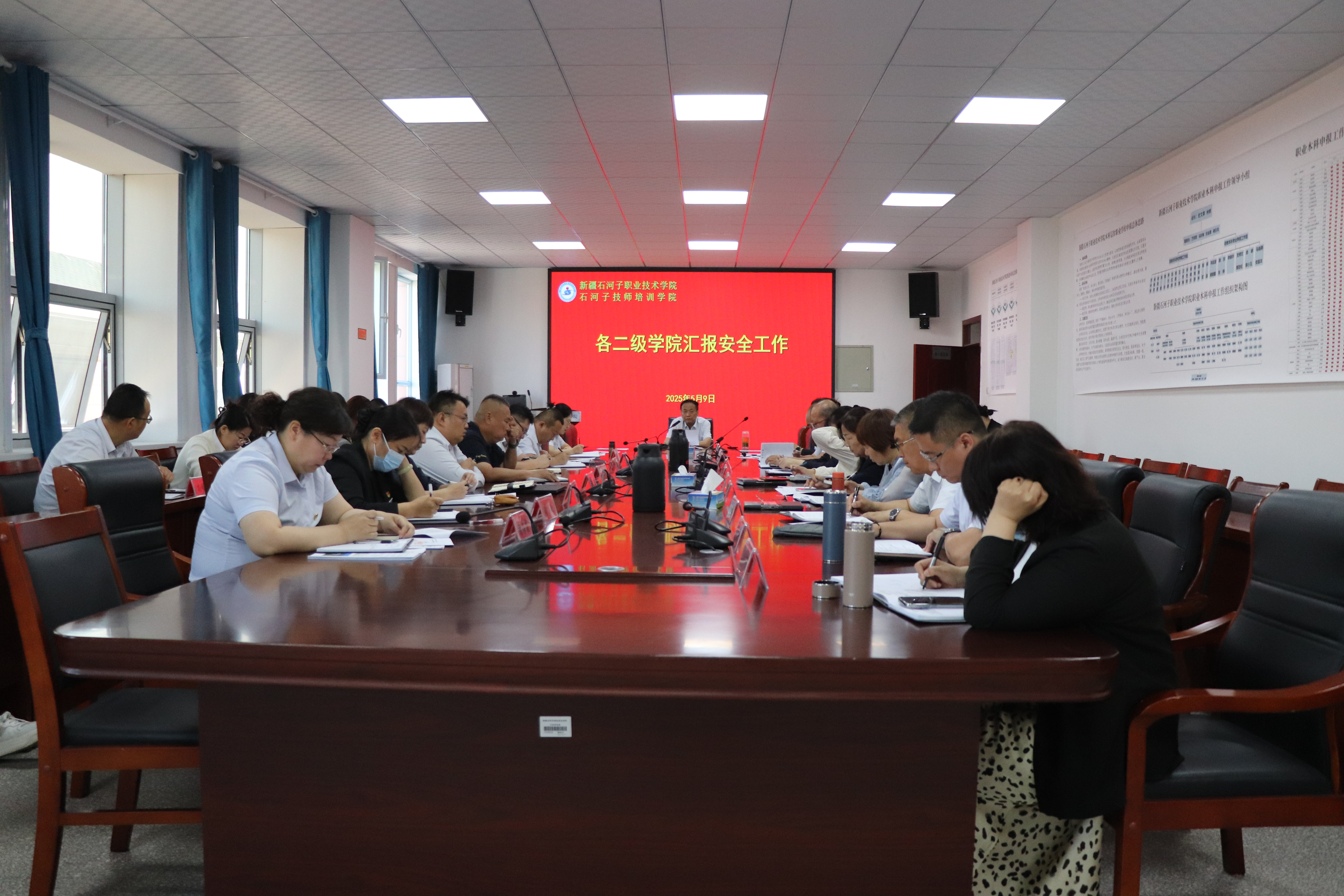 会上,各二级学院书记依次对本学院五一期间学生管理及安全隐患、师生返校情况以及实训室安全等方面进行了详细汇报。在学生管理方面,各学院分享了五一假期期间针对学生出行、活动等的管理措施及遇到的问题,着重汇报了假期结束后学生的返校情况,包括返校人数、未返校学生原因追踪等内容,确保每一位学生的行踪都能得到有效掌握。对于教师安全,各学院提到教师教学任务开展情况、身心健康状况以及教师在教学过程中遇到的安全相关问题反馈。在实训室安全汇报环节,各学院详细介绍了实训室设备的维护与检查、危险化学品的管理、实训课程的安全操作规范等情况,对潜在的安全隐患进行了深入剖析。