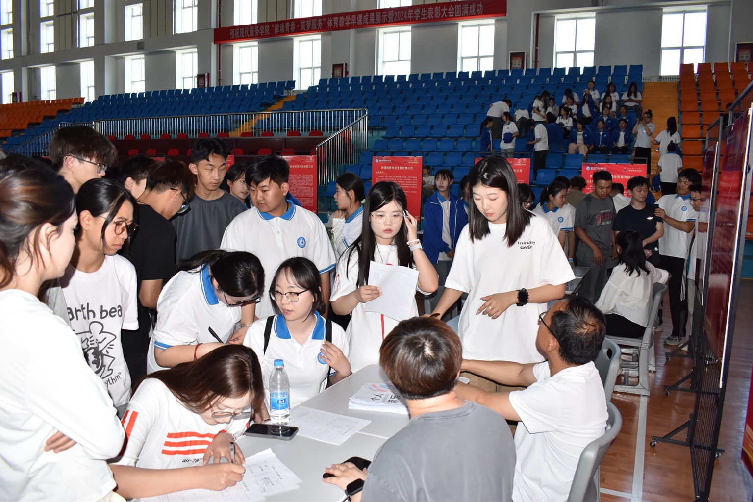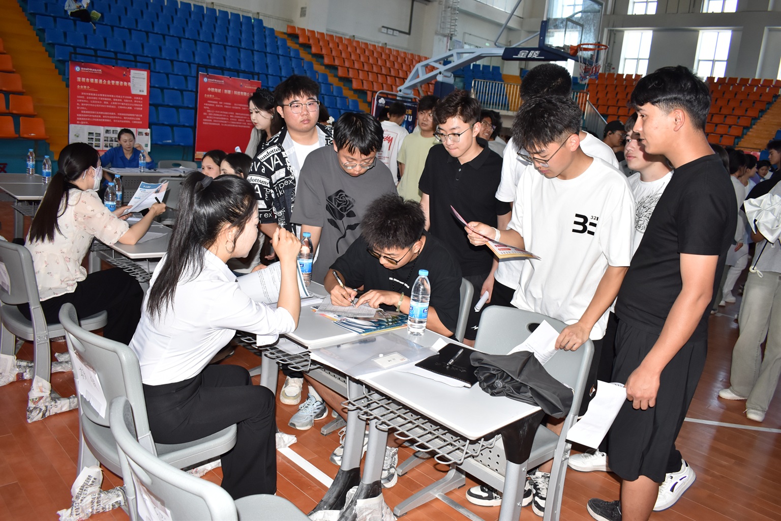 (王需 徐千然 报道)为促进毕业生高质量就业,满足用人单位招才引智需求,5月14日,beat365唯一官方网站在2025年职业教育活动周期间,成功构建起“政校行企”四方联动的产教融合新场景,开展“企业学生面对面”精准对接双选会,在二期操场和体育馆形成人才供需“强磁场”。现场3000余名相关专业的学生参加招聘,与企业达成意向的学生突破1000人次,专业对口率高达92%,为区域产业升级注入新生力量。