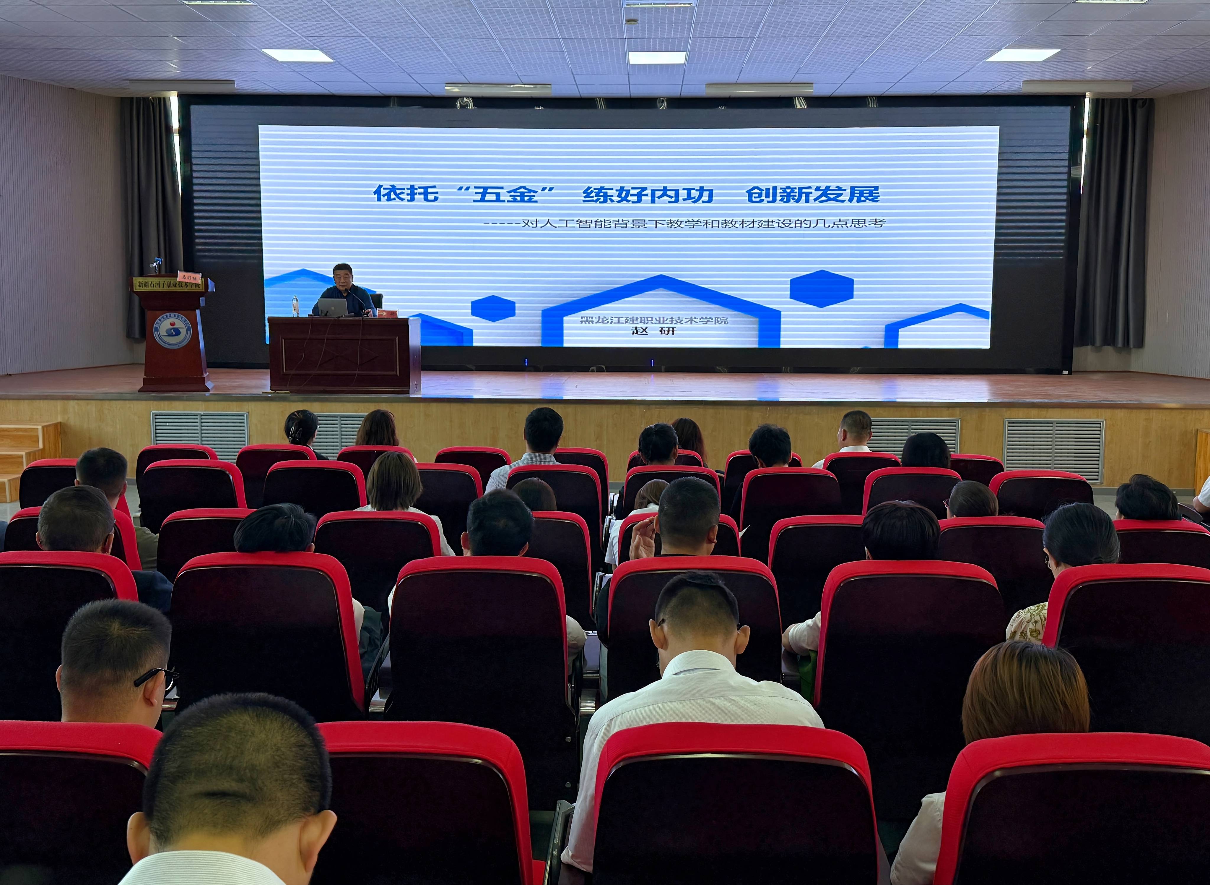 本次培训邀请黑龙江建筑职业技术学院学术委员会主任赵研教授担任主讲。赵研教授以“依托‘五金’练好内功创新发展——对人工智能背景下教学和教材建设的几点思考”为题,开启了一场干货满满的知识分享。培训过程中,赵研教授,从“五金”内涵与认识、教学、教材编写、AI时代我们的作为四方面进行了深入系统的阐述。他指出,职业教育“五金”需“重视应对”;教学手段与模式“期待革新”;教材功能应实现“好看好用”;数字教材将助力“教材革命”;教师在AI时代更要“创新应对”。
