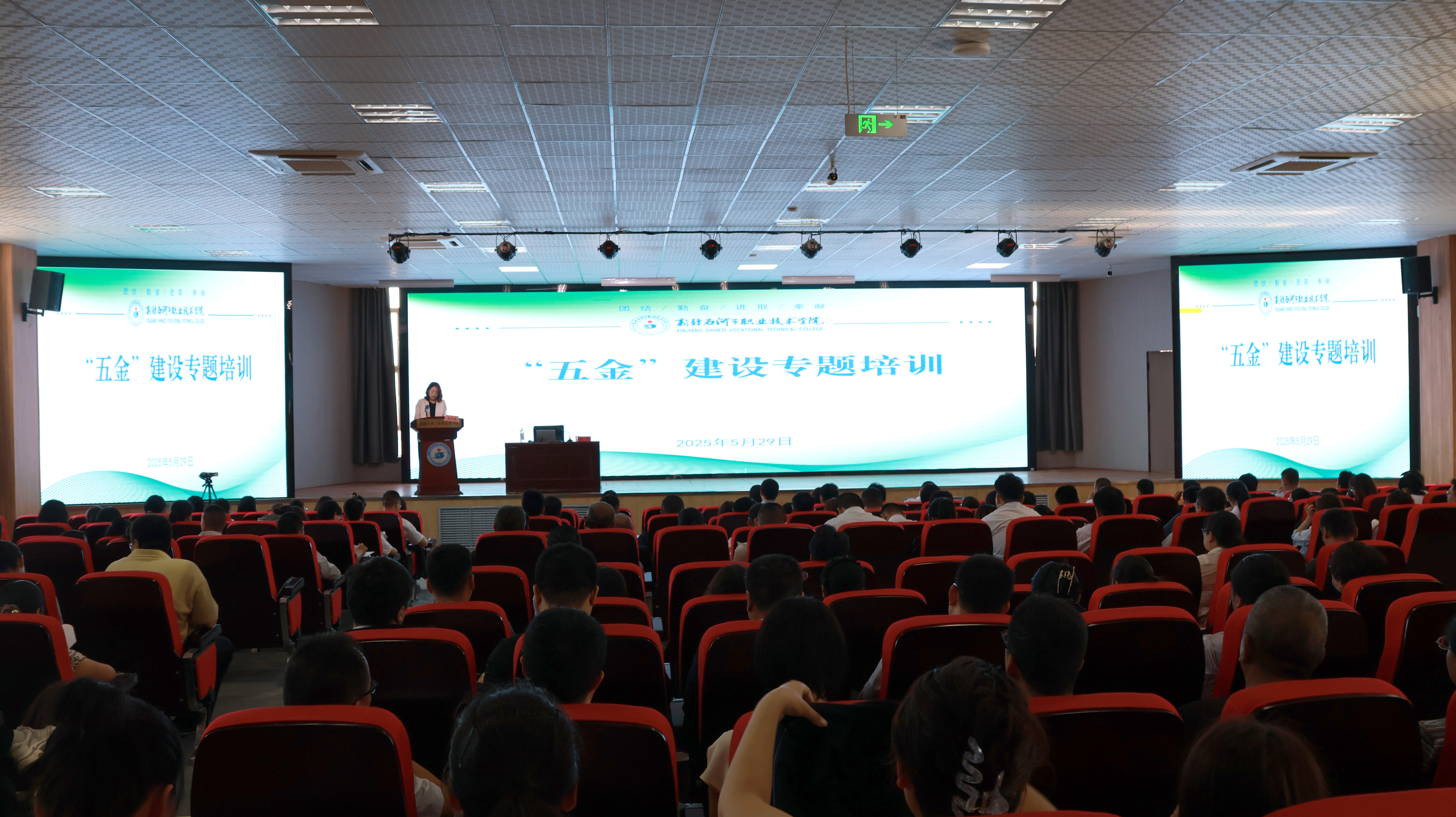 (李玲玲 报道)为推动教师适应人工智能时代教学变革,促进教材建设与新技术深度融合,2025年5月29日上午,beat365唯一官方网站在行政楼南附楼301阶梯教室开展“五金”建设专题培训,副院长马彩梅、相关部门负责人及185名教师参加培训。